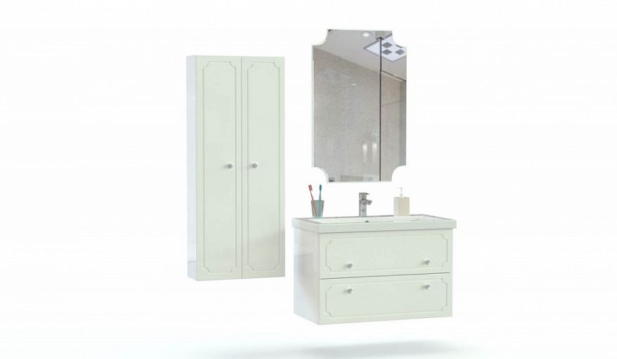 Комплект для ванной комнаты Микс 4 BMS поможет органично вписать в классический интерьер раковину, разместить гигиенические принадлежности и сделать уход за собой комфортнее. Визуально легкая подвесная композиция включает в себя тумбу с двумя выдвижными ящиками, распашной шкаф и большое, фигурно вырезанное зеркало. Выполненные в белом глянце фасады с изящной фрезеровкой надолго сохранят эстетичный вид благодаря влагостойкости. Купить комплект для ванной комнаты Микс 4 BMS приглашаем на сайт нашего интернет-магазина.
