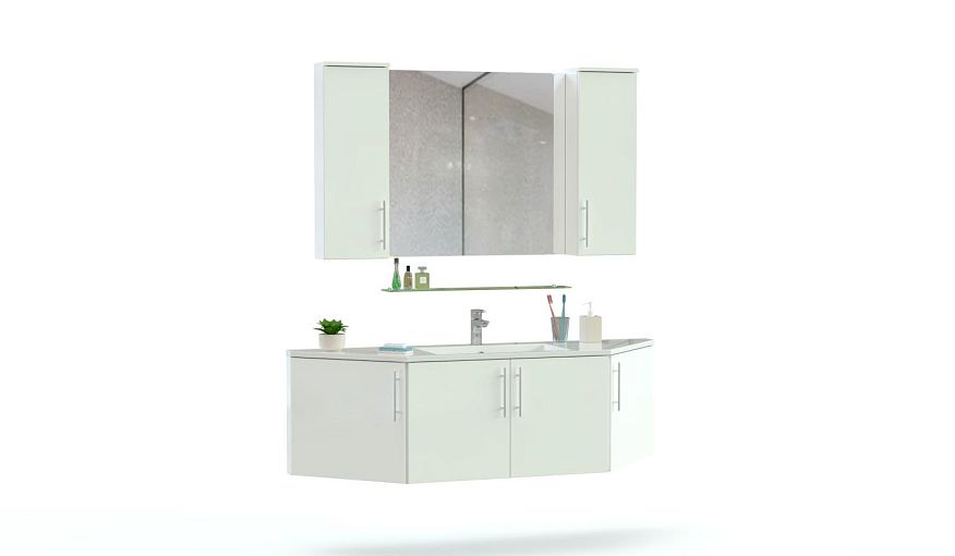 Комплект для ванной комнаты Пирс 5 BMS – это яркий дизайн, функциональность и визуальная легкость. Стильная глянцевая композиция включает в себя трехгранную тумбу под раковину с вместительными распашными отделениями и зеркало, дополненное боковыми шкафчиками и стеклянной полкой для мелочей. Влагостойкие фасады надолго сохранят эстетичный внешний вид, а подвесная конструкция модулей облегчит уборку в помещении. Купить комплект для ванной комнаты Пирс 5 BMS вы сможете в нашем интернет-магазине, изменив цвет и размеры.