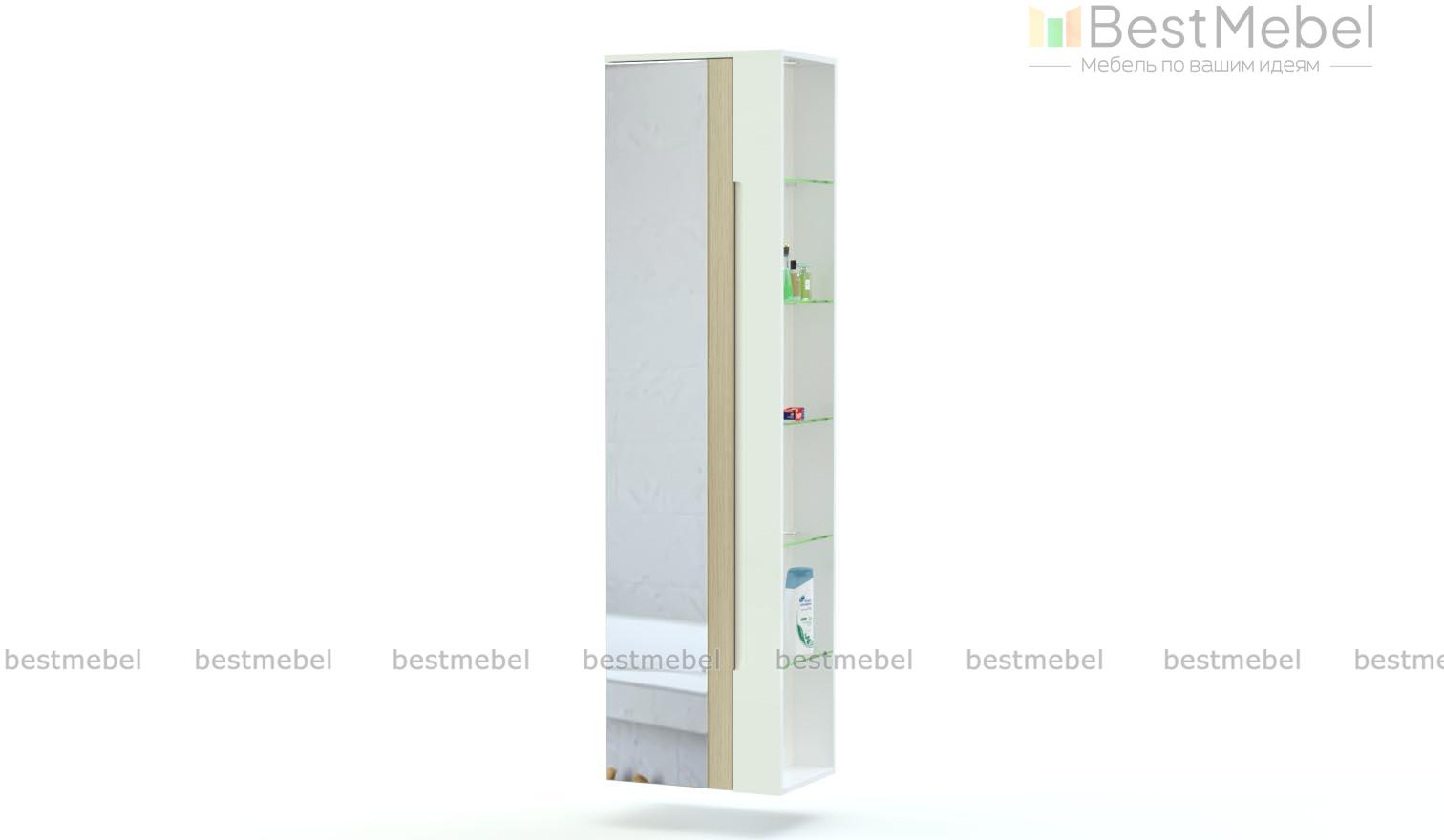Шкаф подвесной в ванную Донна 5 BMS эффектно сочетает в оформлении глянец, зеркальное полотно и контрастные вставки. Высокий пенал, оборудованный глухим распашным отделением и торцевыми открытыми полками для хранения гигиенических принадлежностей, станет прекрасным выбором для просторной ванной комнаты. Зеркальный фасад шкафа дополнит основное зеркало и придаст помещению дополнительную глубину. Купить шкаф подвесной в ванную Донна 5 BMS вы сможете в нашем интернет-магазине.