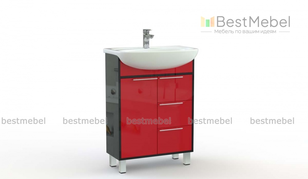 Тумба для ванной Найт 11 BMS сочетает в себе актуальный минималистичный дизайн и функциональность. Модель под раковину дополнена удобной системой хранения из распашного отделения и трех выдвижных ящиков, которые помогут разместить бытовую химию и уходовые средства, аксессуары и прочие мелочи. Корпус темных тонов скомбинирован с ярко-красным фасадом, торцевые ручки делают пользование комфортным. Купить тумбу для ванной Найт 11 BMS приглашаем к нам в интернет-магазин.
