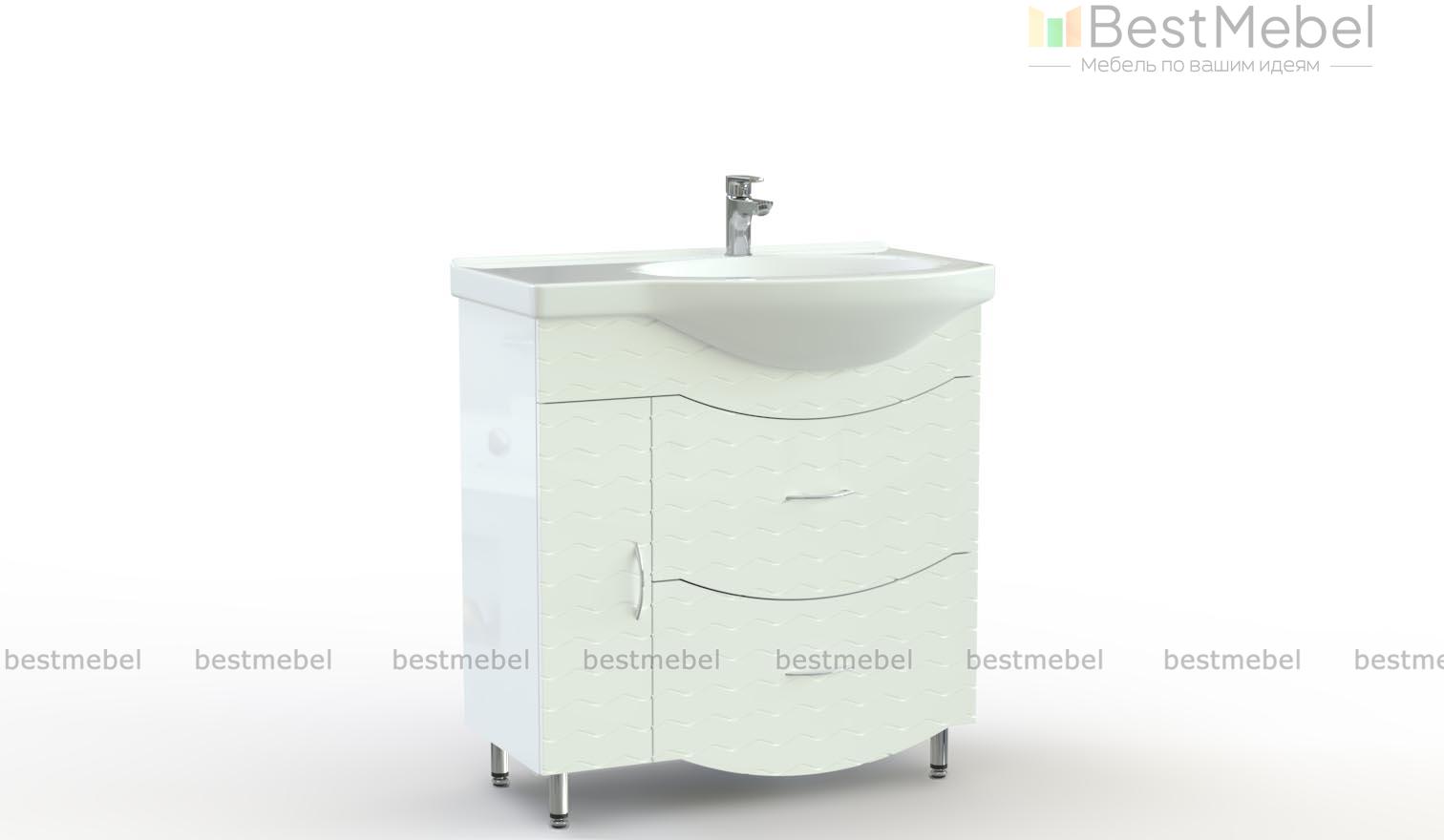 Тумба под раковину Ноче 10 BMS с фигурно вырезанным, скругленным фасадом выглядит объемной и гармонично смотрится в просторных ванных комнатах. Элегантная напольная модель выполнена в светлом древесном цвете с изящным декором и располагается на высоких хромированных опорах. Тумба под раковину оборудована двумя глубокими выдвижными ящиками и распашным отделением для хранения гигиенических принадлежностей и аксессуаров. Купить тумбу под раковину Ноче 10 BMS вы сможете выгодно в нашем интернет-магазине.