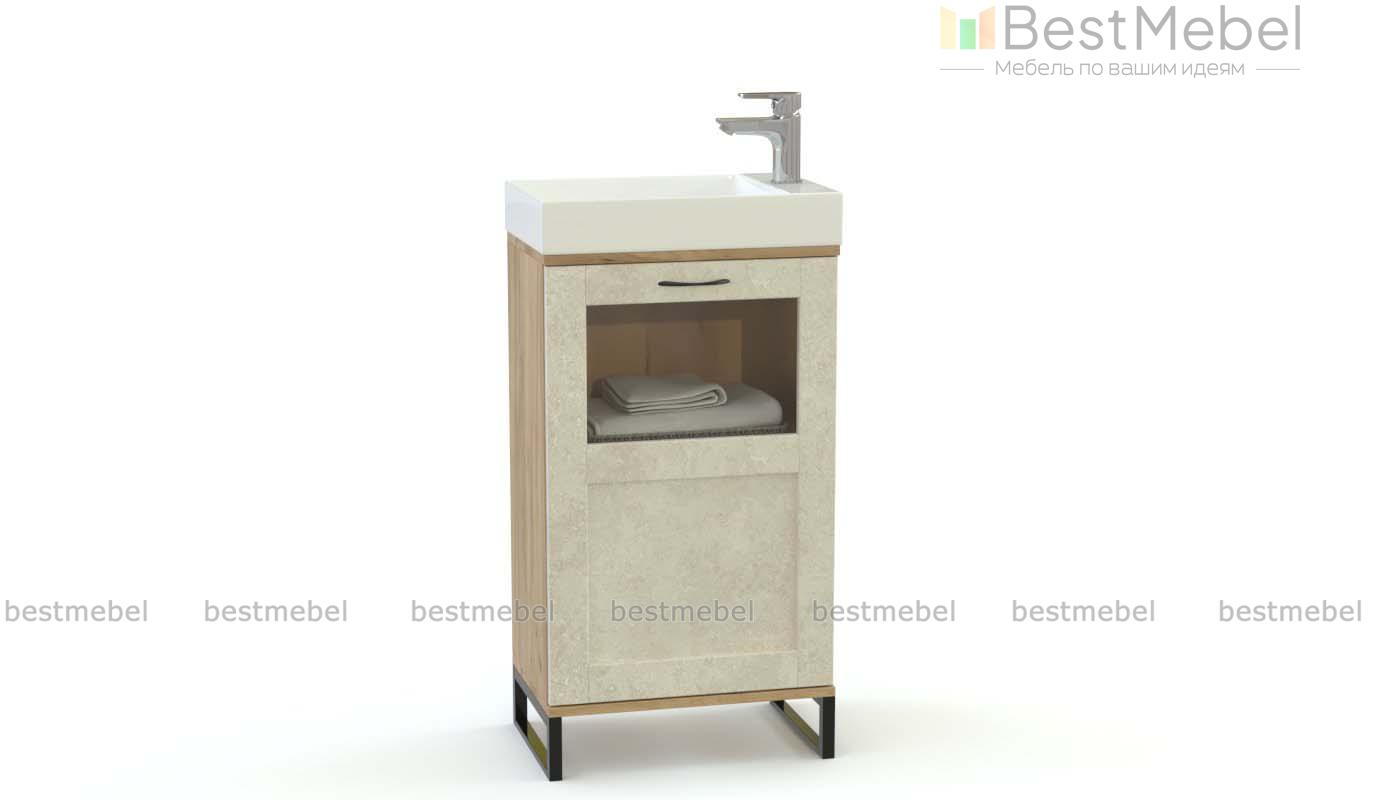 Тумба в ванную Дельта 2 BMS компактна и легко вписывается в небольшие и гостевые комнаты. Модель в стилистике лофт отличается нарочитой простотой и характерной комбинацией нежно-голубого, черного и теплых древесных тонов. Тумба поможет гармонично вписать в интерьер раковину и разместит гигиенические принадлежности в распашном отделении с полкой и застекленной дверцей. Купить тумбу в ванную Дельта 2 BMS приглашаем к нам в интернет-магазин.