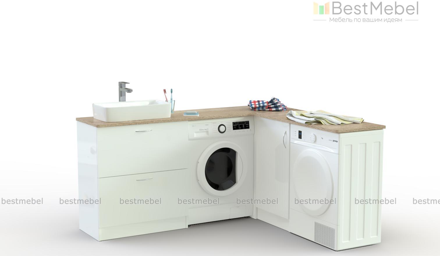 Тумба в ванную Тайсон 6 BMS станет отличным выбором для просторных помещений. Угловая встраиваемая модель поможет рационально организовать пространство ванной комнаты или прачечной, сэкономив полезную площадь. Тумба под раковину универсального современного дизайна выполнена в светлом цвете и оборудована распашным отделением и выдвижными ящиками, а также двумя нишами - под стиральную и сушильную машины. Купить тумбу в ванную Тайсон 6 BMS приглашаем к нам в интернет-магазин.