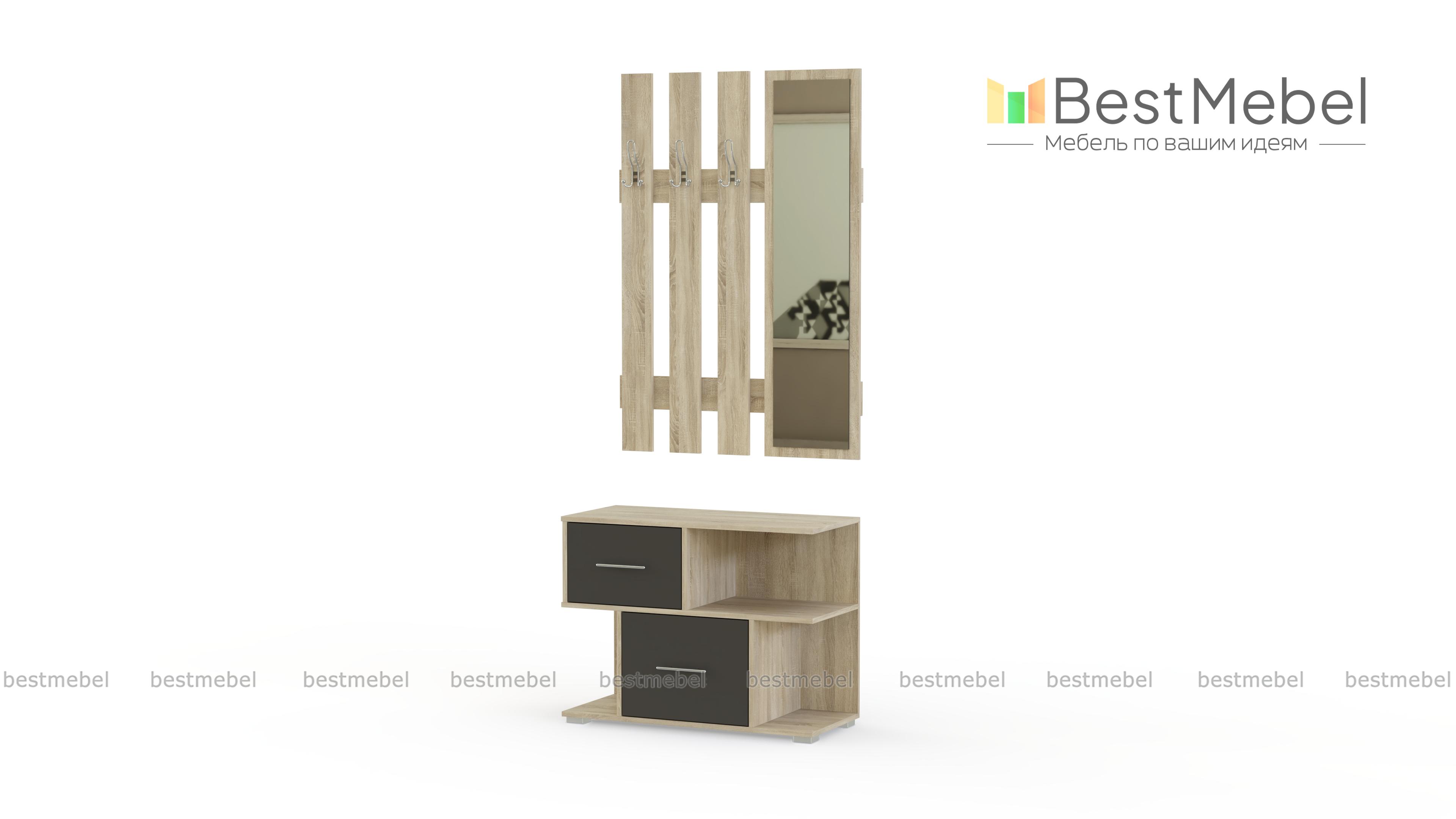 Стенка-прихожая «Идеал 25» BMS миниатюрных размеров станет просто находкой для владельцев современных малогабаритных квартир-студий. Комплект состоит из пары практичных модулей – тумбы с асимметрично расположенными ящиками и открытыми полками и навесной панели с крючками и зеркалом. Необыкновенно стильный вид придает модели контрастное сочетание темного корпуса и светлых фасадов тумбы. Купить стенку-прихожую «Идеал 25» BMS по бюджетной цене приглашаем в наш интернет-магазин.