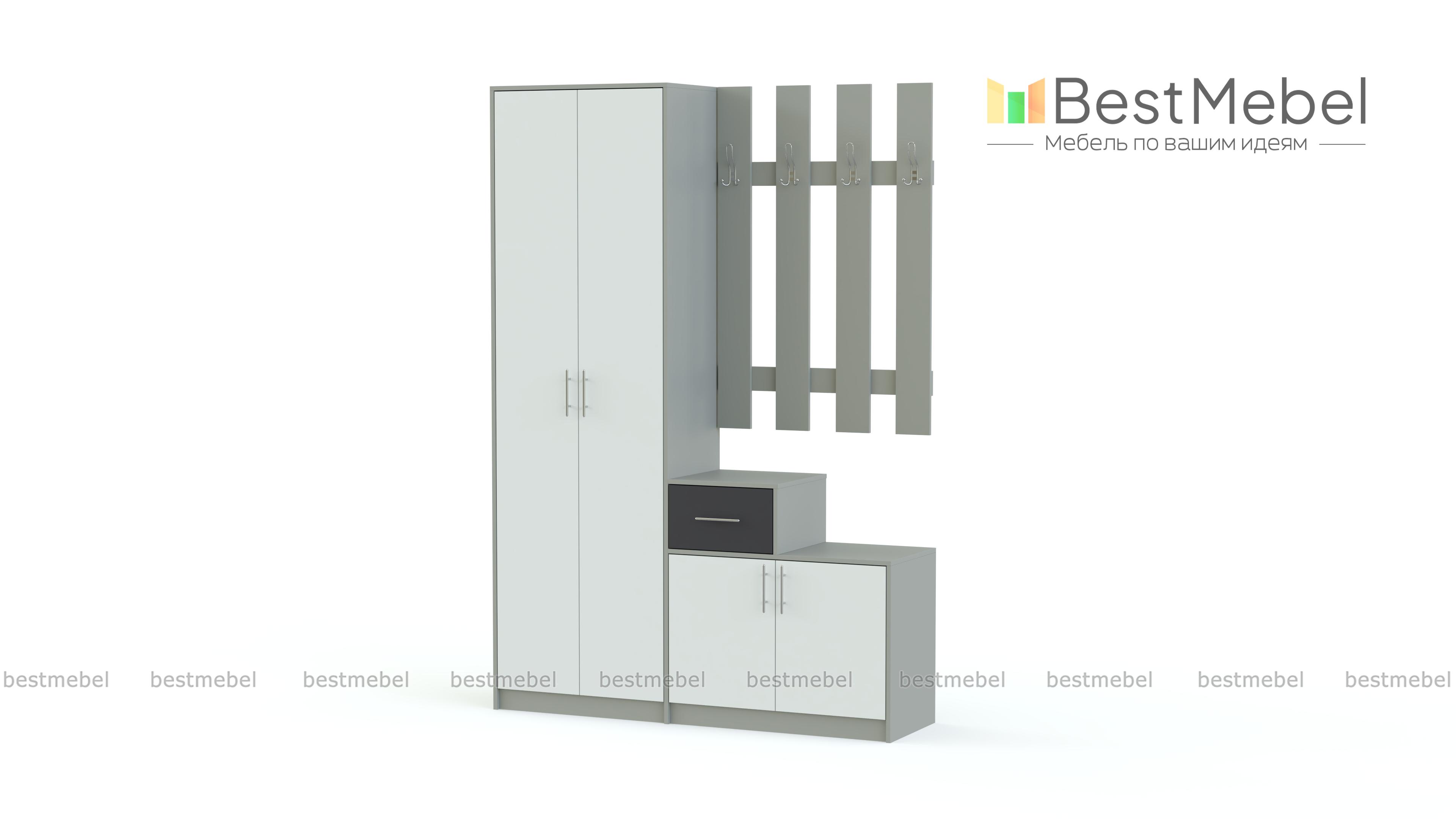 Отличная, современная прихожая. Нравится, что на сайте можно изменить цвет, размер, материал. Подобрали все параметры по размерам нашего коридора. Собирали самостоятельно, благодаря инструкции. В целом довольны.