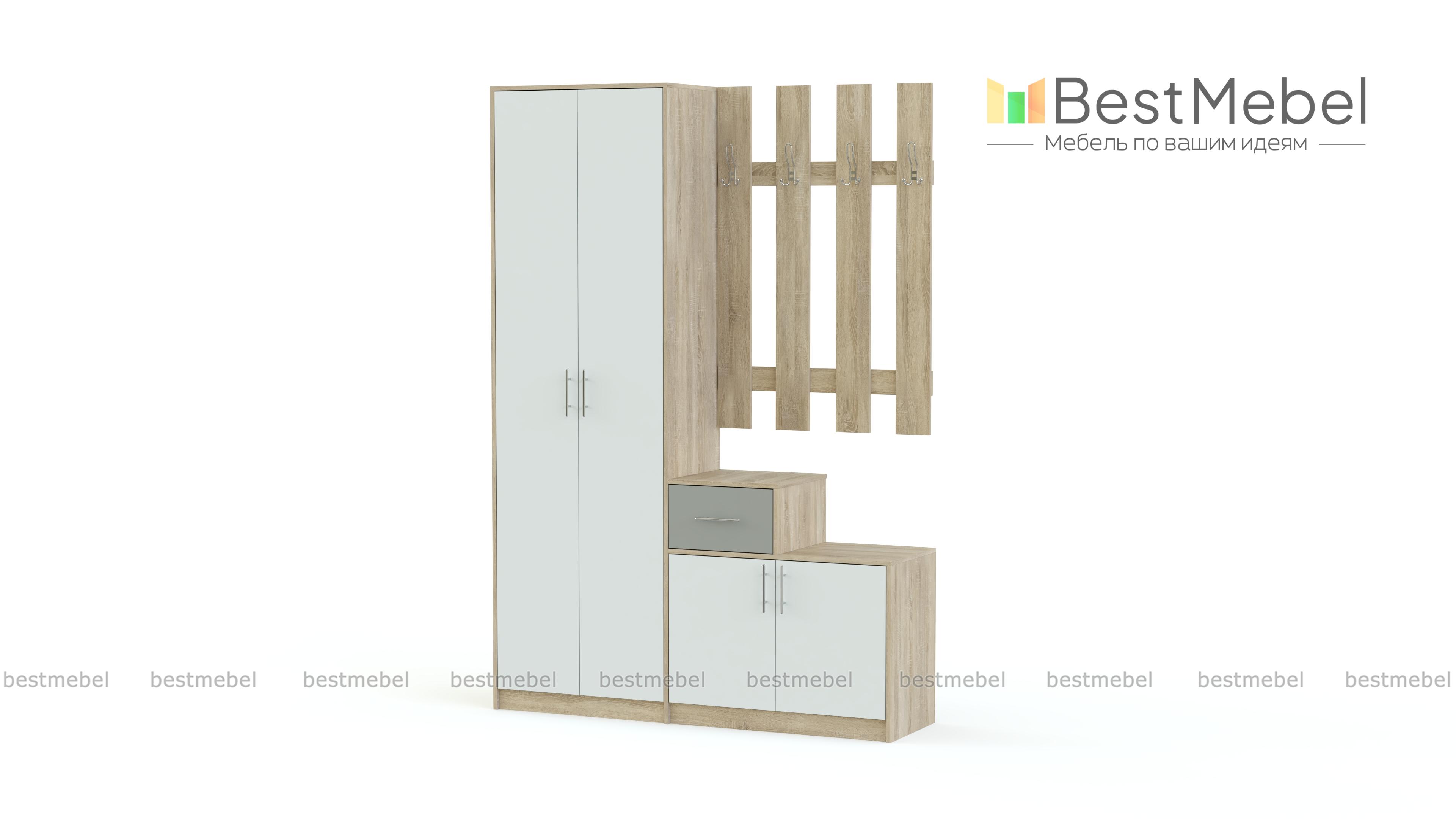 Недорогая прихожая, все просто и лаконично. Настенную вешалку использовала для других целей, а в комплект добавила зеркало Наоми BMS. Спасибо магазину, никогда не подводит)))