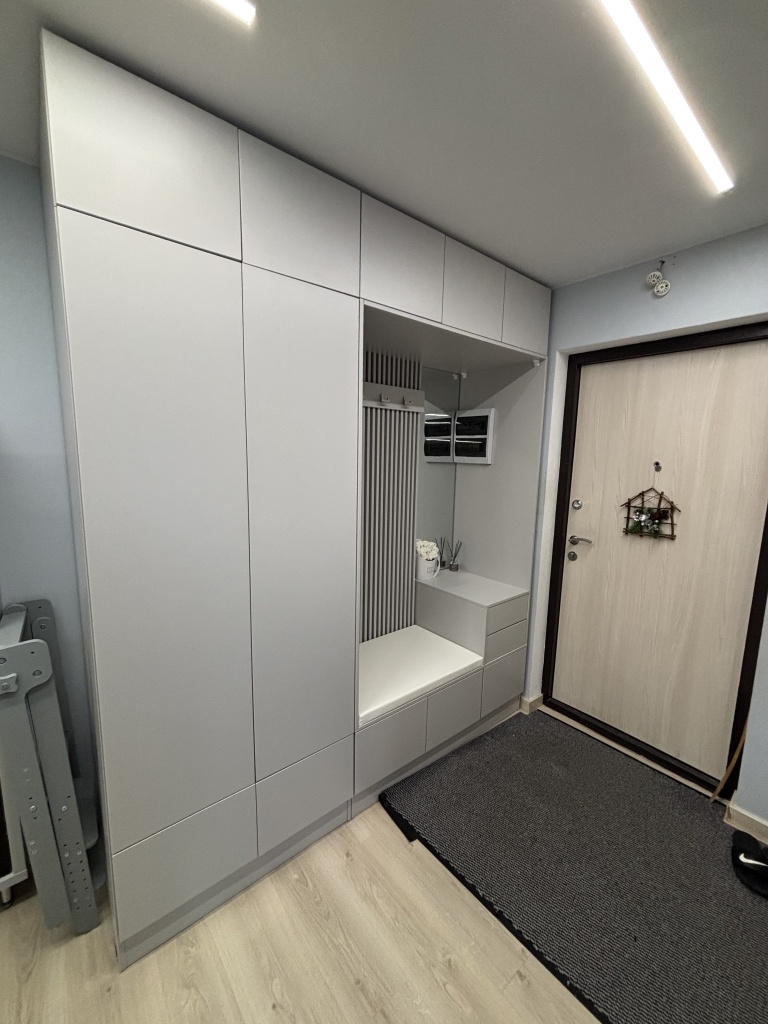 Заказ 00000270539, эскиз Прихожая Дублин 34 BMS (2050х2370х600)Нашли изначально фирму на известном маркетплейсе, изучили ассортимент прихожих и выбрали подходящий нам вариант готовой прихожей . Удобный конструктор на сайте помогает задать все нужные нам параметры - изменили размеры изделия, цвет, отобразили зеркально, добавили кромку. В общем, сумма заказа конечно же изменилась, но разница в цене была не критична. На изготовление и доставку ушло ровно 14 дней. Сборкой прихожей занимался мой муж сам, постепенно. Здесь есть минус - схема в бумажном варианте очень мелкая и неудобная , но в электронном виде можно через куар-код отсканировать и открыть версию с сайта, там пошаговая инструкция более доступная. По качеству прихожая соответствует ожиданиям. Есть небольшие сколы , но они не видны , к счастью. Из фурнитуры- мы решили заменить крючки, которые были в комплекте, на другие подходящие по цвету ( в комплекте были черные, а мы хотели серые), а также поменяли доводчики ( нажимной механизм push to open) на магнитный толкатель скрытого монтажа (это личное желание мужа). Фурнитура в соответствует качеству и цене .В целом покупкой остались довольны, планируем еще детскую мебель заказать. Рекомендую!