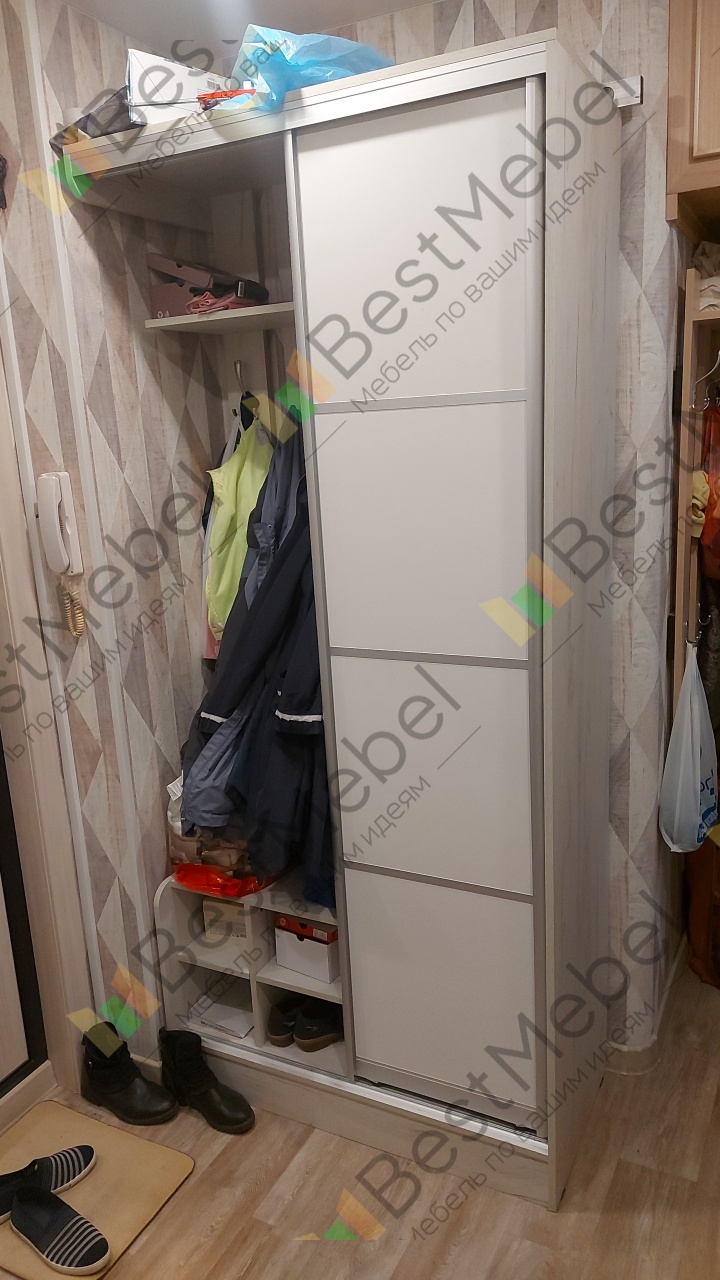Прихожую брали для кладовки. Подобрали свои размеры. Вписалась идеально. Небольшая, но вместительная. Рядом стоит подарочная тумба для обуви. Кладовку обустроили и место еще осталось.