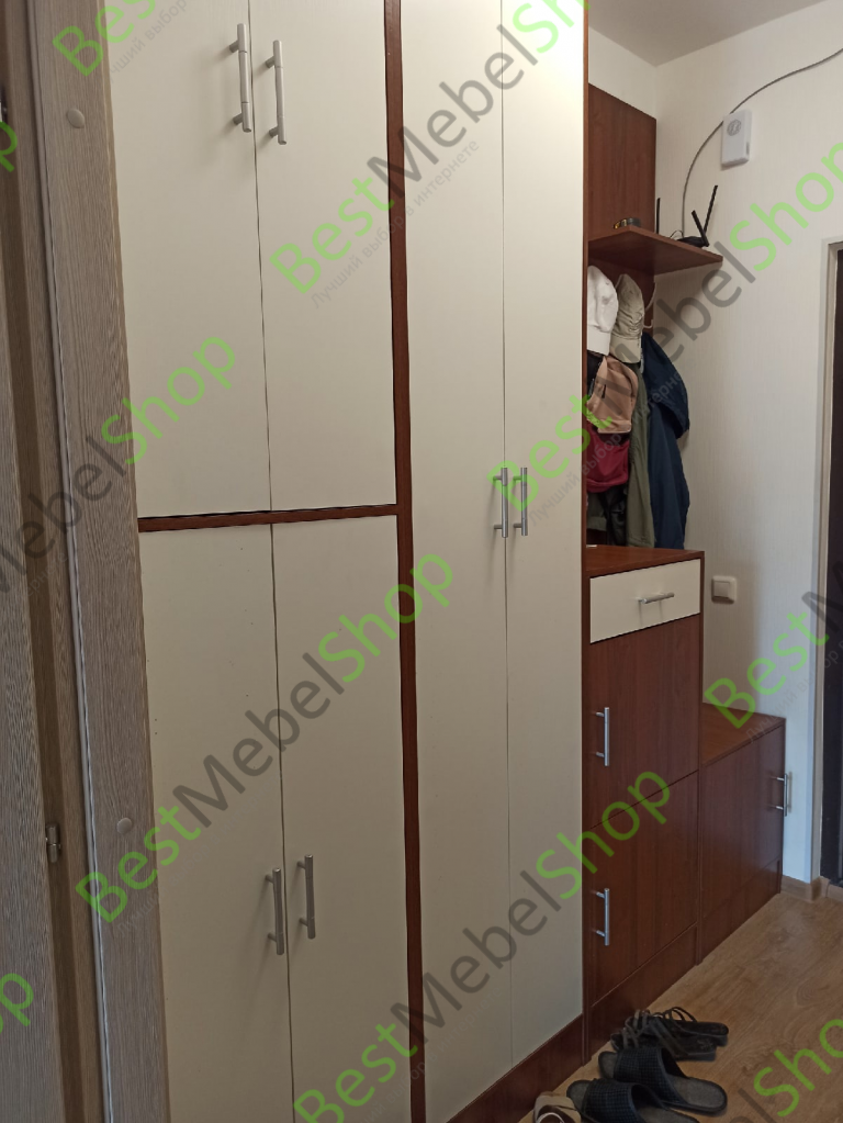 Удобная вместительная прихожая. Много просторных полок. Заказывали по своим параметрам, чтобы точно все вошло без лишних свободных пространств. Зеркало, которое идет в комплекте, повесили на противоположную сторону. По результатам сборки были замечены небольшие сколы внутри шкафа на полках, хорошо что они почти не заметны