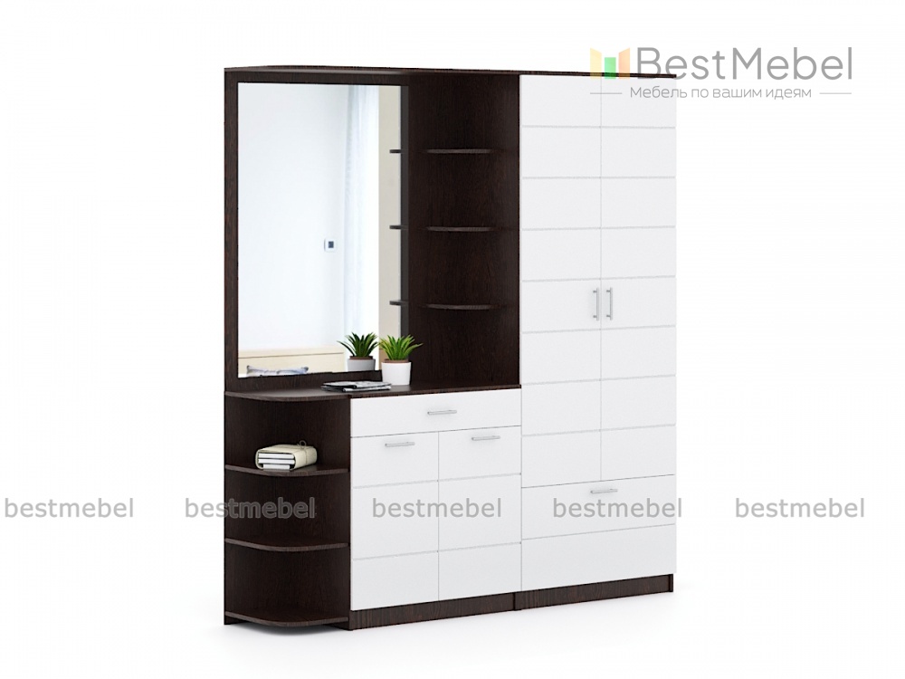 Очень довольна прихожей, стильная, красивая, очень удобная. Закруглённые углы придают обтекаемую форму и позволяют свободно двигаться не ударяясь. Очень довольна.