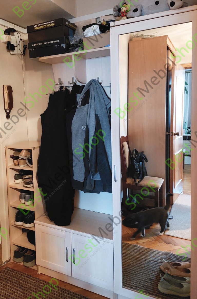 Сразу приглянулась прихожая модели ВТ-889, стильная и оригинальная. Удобный боковой ящик с зеркалом. Обувь есть, где разместить. Доставку осуществили в точно оговоренный день и пришли во время, хоть часы по ним проверяй. Надеюсь прихожей буду пользоваться долгие годы.