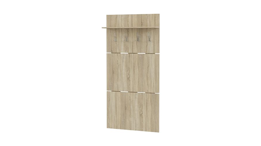 Вешалка Талура BMS - эффектно смотрится за счет необычного дизайна. Прямоугольные панели расположены горизонтально и соединены тонкими металлическими элементами. Для шляп и прочих головных уборов предусмотрена полка. Пальто, куртки и аксессуары к ним поместятся на 4-х тройных вешалках. Такая модель будет отличным решением, как для дома, так и для офиса скромных размеров. Цветовая гамма легко корректируется с помощью нашей палитры. Купить вешалку Талура BMS по низкой цене можно на нашем официальном сайте.