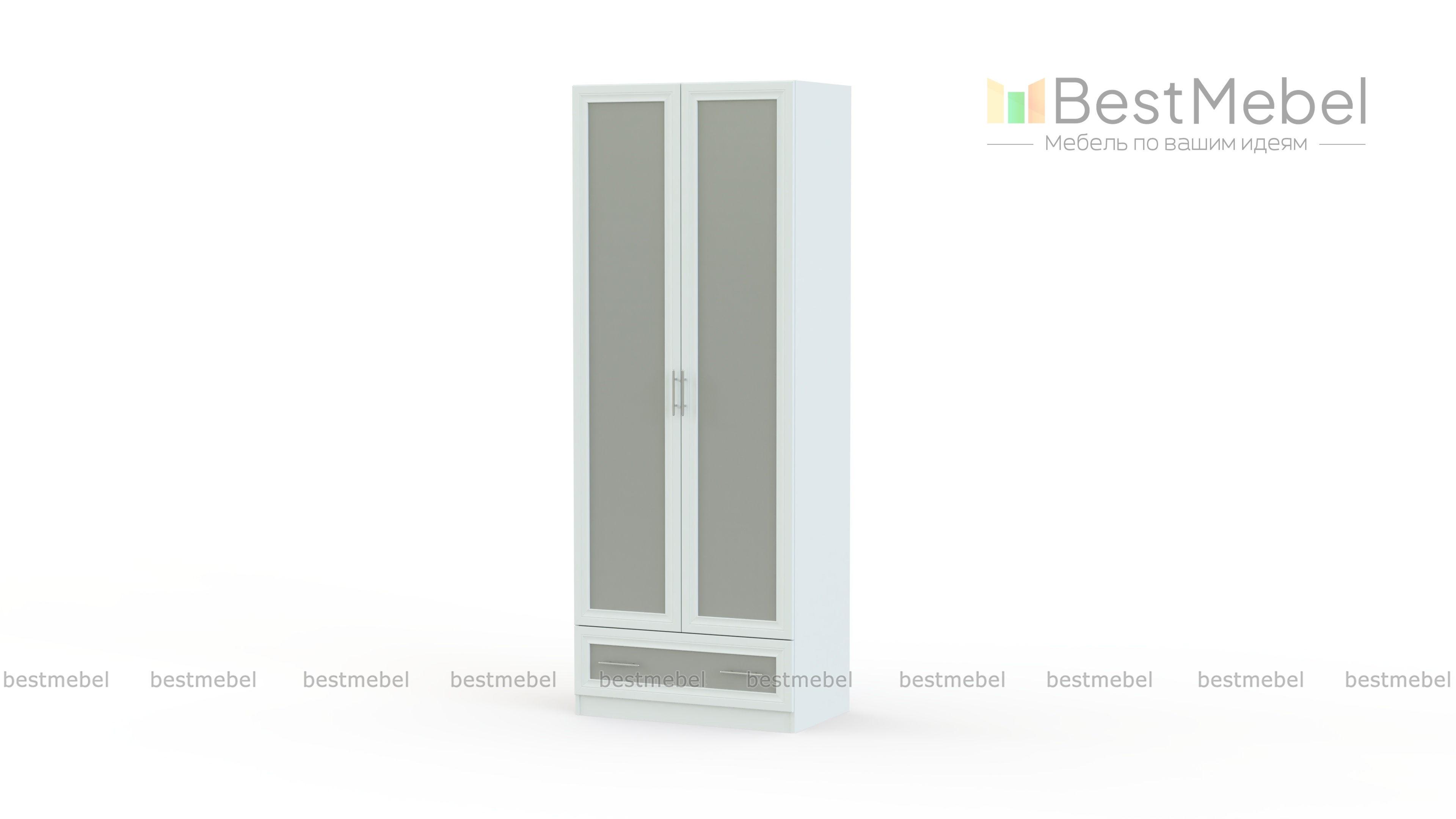 Распашной шкаф Крона 24 BMS гармонично дополнит интерьер небольшой уютной спальни или прихожей. Элегантная модель в контрастных тонах декорирована рамочными фасадами и будет уместно смотреться и в современном, и в классическом интерьере. Внутреннее наполнение из традиционного отделения со штангой и полкой дополняет удобный ящик для мелких вещей в основании. В шкафу петли с доводчиком, выпил под плинтус скошенный 12*3,