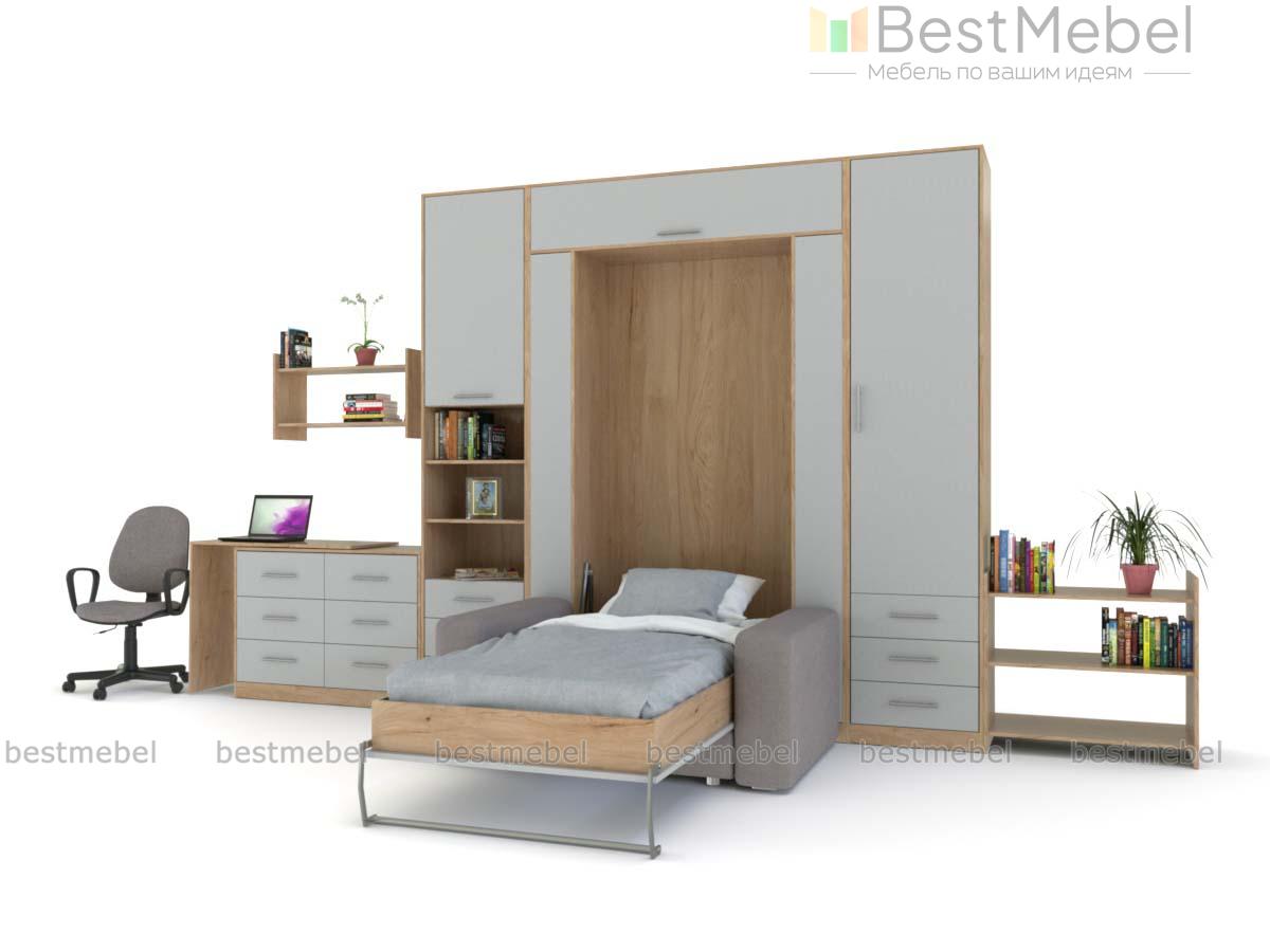 Шкаф-кровать Урбанист 03 BMS объединяет удобную систему хранения, комфортную зону отдыха и спальное место. Многофункциональная композиция, выполненная в сочетании нейтрального серого и теплых оттенков под древесный массив, станет отличным решением для небольших городских квартир и студий в стиле лофт. Шкаф с антресолью и боковыми отделениями для белья, одежды, книг и бытовых мелочей дополнен модулем с откидной кроватью и уютным диваном. Купить шкаф-кровать Урбанист 03 BMS по лучшей цене приглашаем к нам в интернет-магазин.