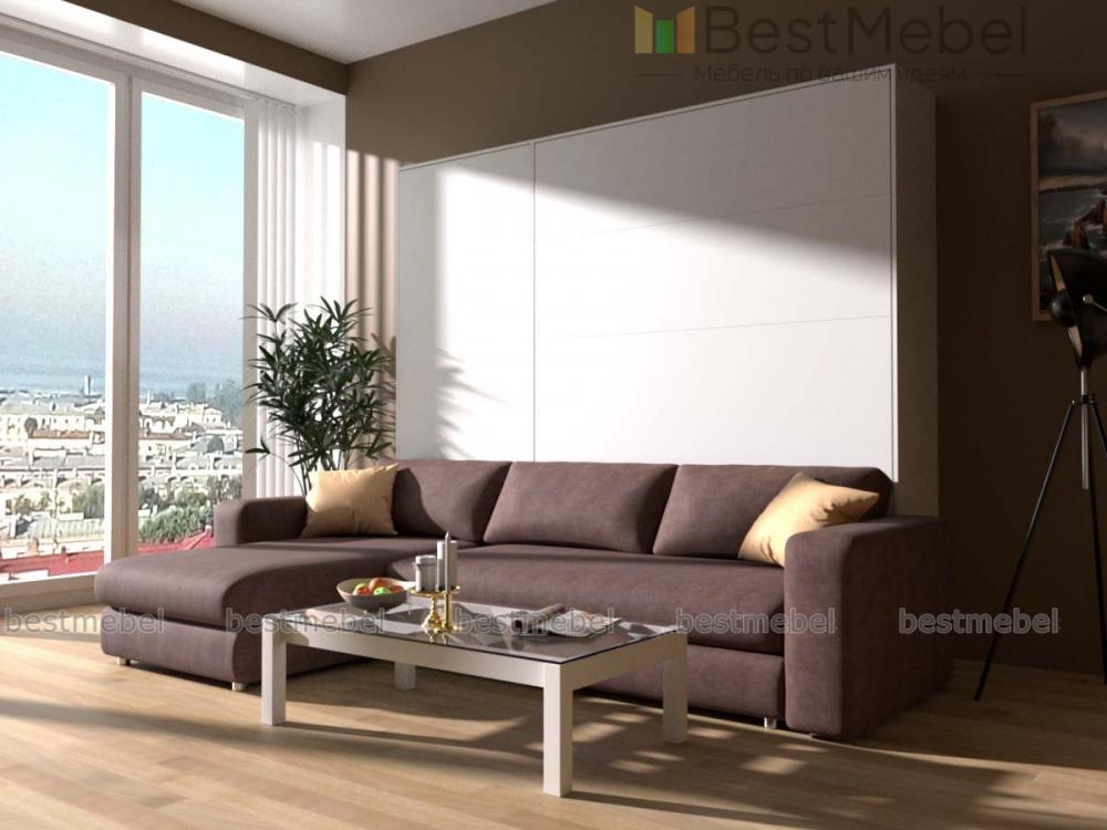 Шкаф-кровать с диваном Жанна BMS позволит вам сэкономить полезную площадь и подходит для современных студий. Визуально легкая композиция в контрастной черно-белой гамме включает в себя пенал, модуль с откидной кроватью и просторный угловой диван с принтованными подушками в роли спинки. Полноценное спальное место вы получаете при помощи надежного и простого в эксплуатации вертикального механизма. Купить шкаф-кровать с диваном Жанна BMS приглашаем в наш интернет-магазин по выгодной цене.