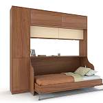 Шкаф-кровать трансформер Форма 2 BMS просто и эффективно решит проблему нехватки полезной площади. Композиция 3 в 1 объединяет удобную систему хранения, рабочую зону и спальное место, значительно экономя пространство. Компактная стенка с контрастными фасадами, оборудована пеналом, письменным столом и антресольными закрытыми полками со встроенной подсветкой. При необходимости нижняя часть легко трансформируется в полноценную кровать с помощью горизонтального механизма подъема. Купить шкаф-кровать трансформер Форма 2 BMS для современной молодежной комнаты приглашаем в наш интернет-магазин.
