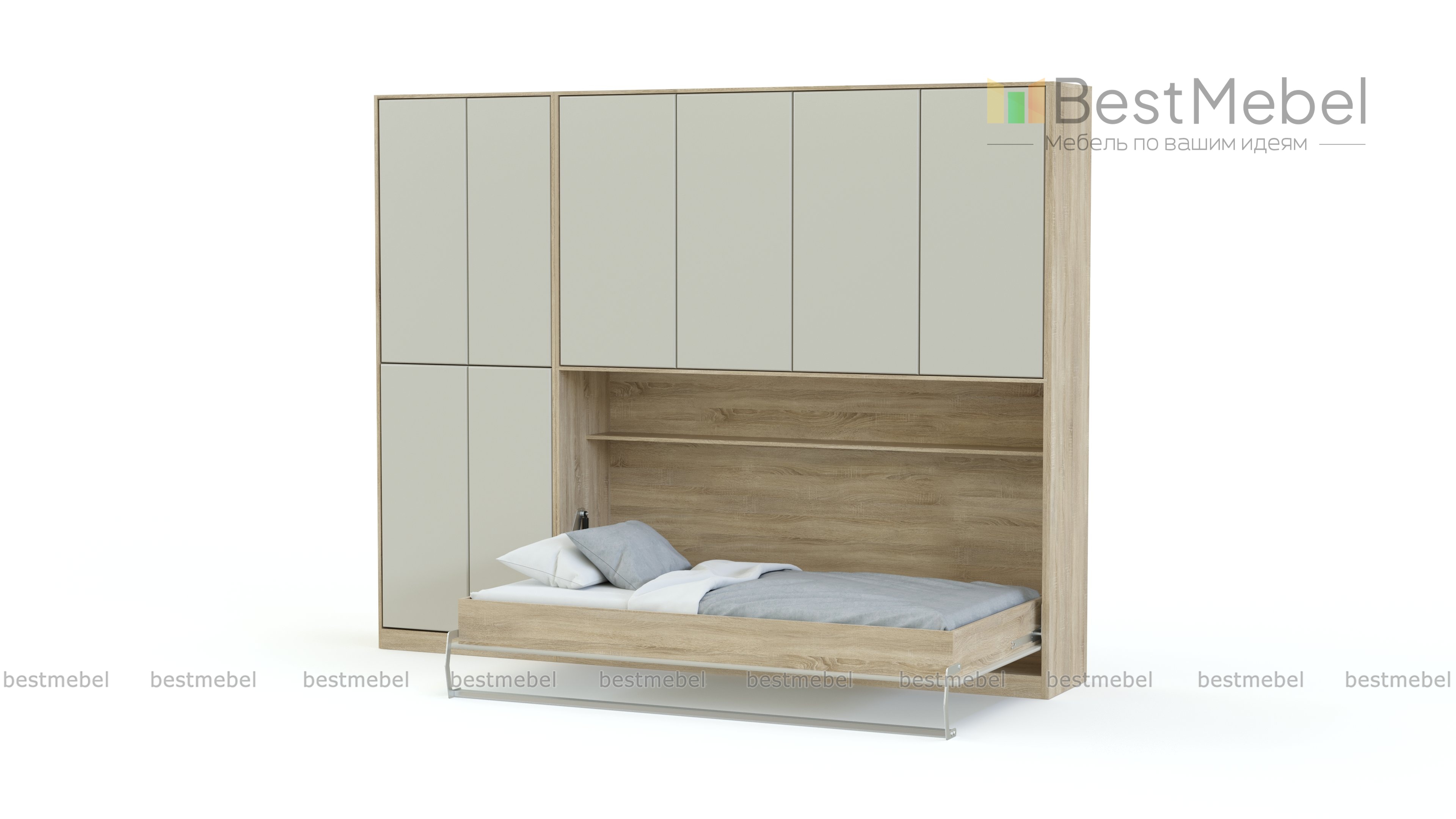 Мы не рекомендуем покупать пружинные матрасы к шкафу-кровати. Стоит отдавать предпочтение беспружинным изделиям. Это связано с тем, что поведение пружин в вертикальном положении матраса невозможно предсказать. Матрас быстро подвергается деформации и смещению слоев. Идеальным вариантом для откидной модели будет лёгкий беспружинный матрас, основу которого составляют современные материалы, не имеющие в составе пружины.