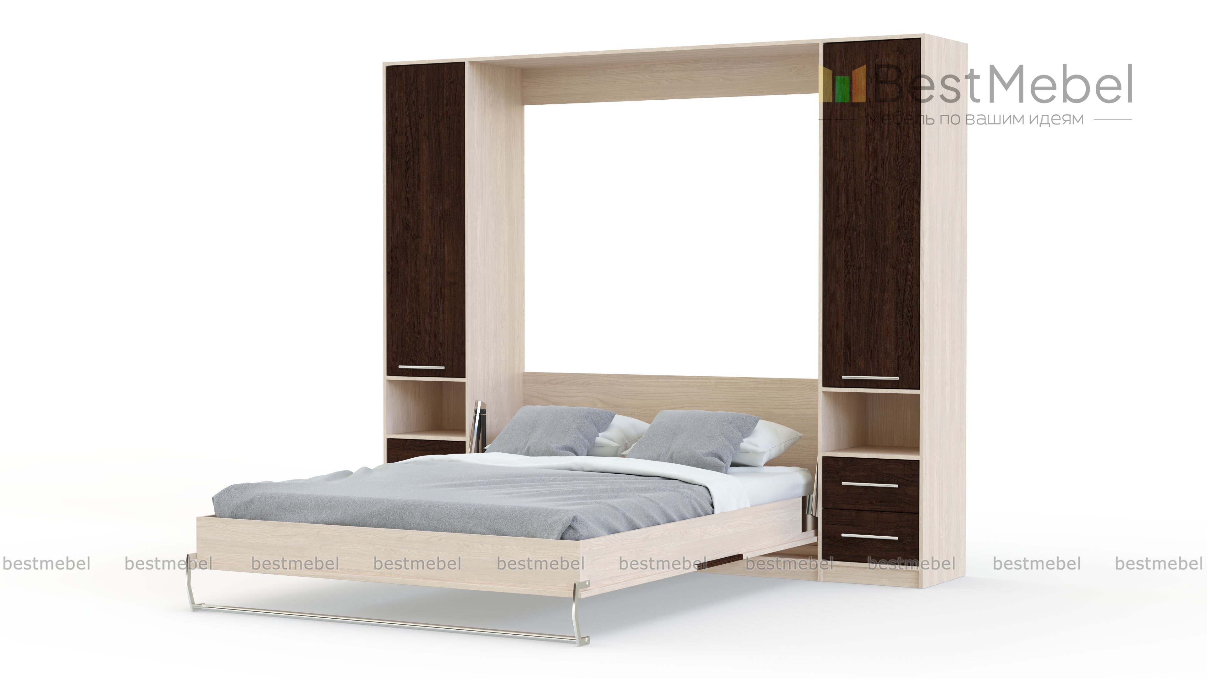 Шкаф-кровать трансформер Мастер-4 BMS будет востребован в небольших помещениях, где актуальна экономия пространства. В сложенном виде модель представляет собой компактную стенку современного дизайна, оборудованную распашными отделениями, выдвижными ящиками и нишами для бытовых мелочей, книг и декоративных предметов. Центральная часть скрывает откидной модуль-трансформер, который позволит легко получить полноценное спальное место. Купить шкаф-кровать трансформер Мастер-4 BMS по выгодной цене приглашаем к нам в интернет-магазин.