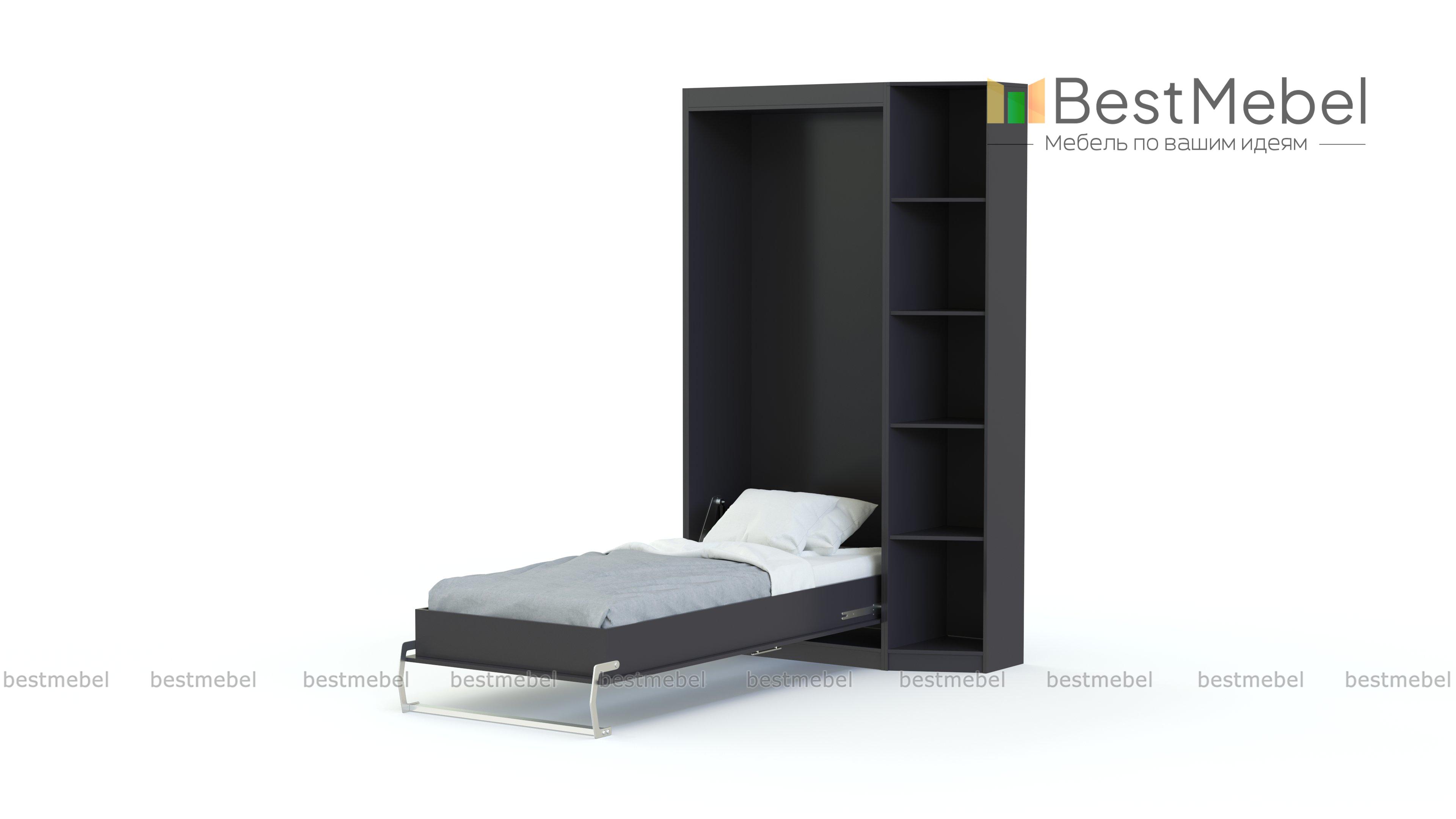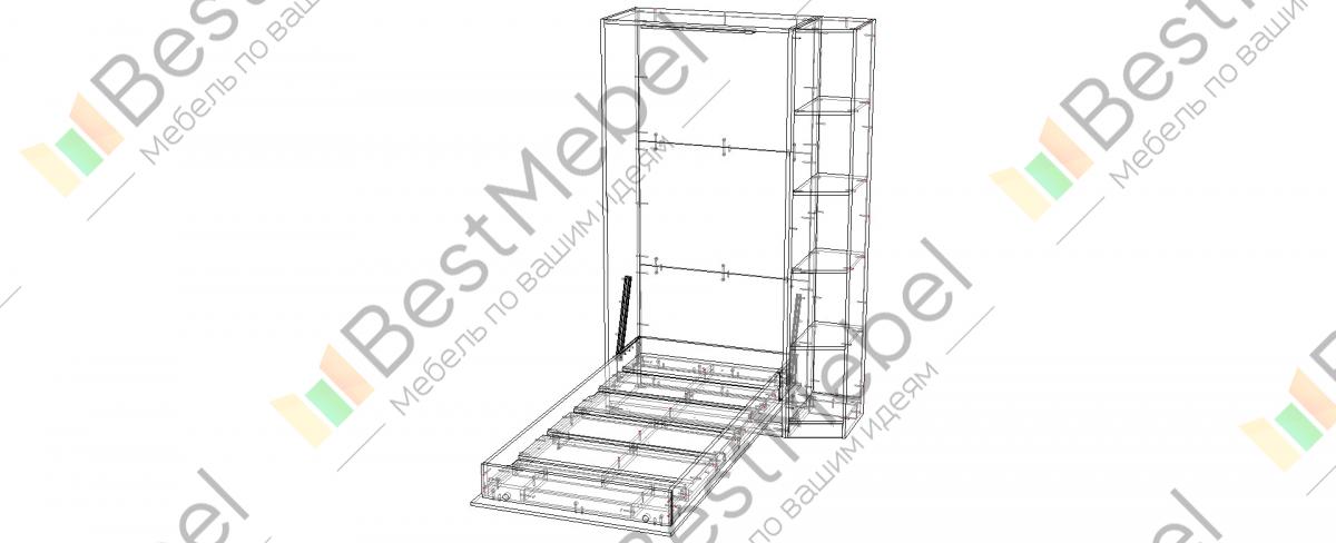 Шкаф-кровать трансформер Вайолет BMS в собранном виде представляет собой небольшой стильный шкаф, а ночью превращается в комфортное спальное место. Практичная модель 2 в 1 выполнена в универсальном белом цвете и отличается простым и функциональным современным дизайном. Для книг и интерьерных мелочей предусмотрен торцевой стеллаж, а за имитацией фасада с открытой полкой скрывается кровать-трансформер. Купить шкаф-кровать трансформер Вайолет BMS и сэкономить полезную площадь комнаты вам поможет наш интернет-магазин.