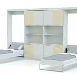 Шкаф-кровать трансформер Жасмин 60 BMS поможет оборудовать комфортную, визуально легкую комнату для двоих детей. Линейная композиция включает в себя шкафы с распашными отделениями и нишами и два модуля с откидными кроватями. При помощи вертикального механизма вы легко получите два полноценных спальных места, которые так же просто складываются, и у детей остается пространство для игр. Выполненная в белом цвете, модель декорирована ванильными вставками. Купить шкаф-кровать трансформер Жасмин 60 BMS приглашаем в наш интернет-магазин.