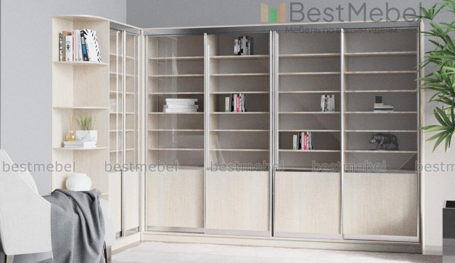 Книжный шкаф-купе Парма 3 BMS характеризуется отличной вместительностью и практичной угловой конструкцией, которая позволит выгодно использовать особенности планировки. Крупногабаритная композиция объединила четырех- и двухдверный шкафы-купе и открытый боковой модуль со скругленными полками. Благодаря сочетанию застекленных, открытых и глухих отделений вы сможете разместить обширную библиотеку, бытовые вещи и предметы декора. Купить книжный шкаф-купе Парма 3 BMS по выгодной цене приглашаем к нам в интернет-магазин.