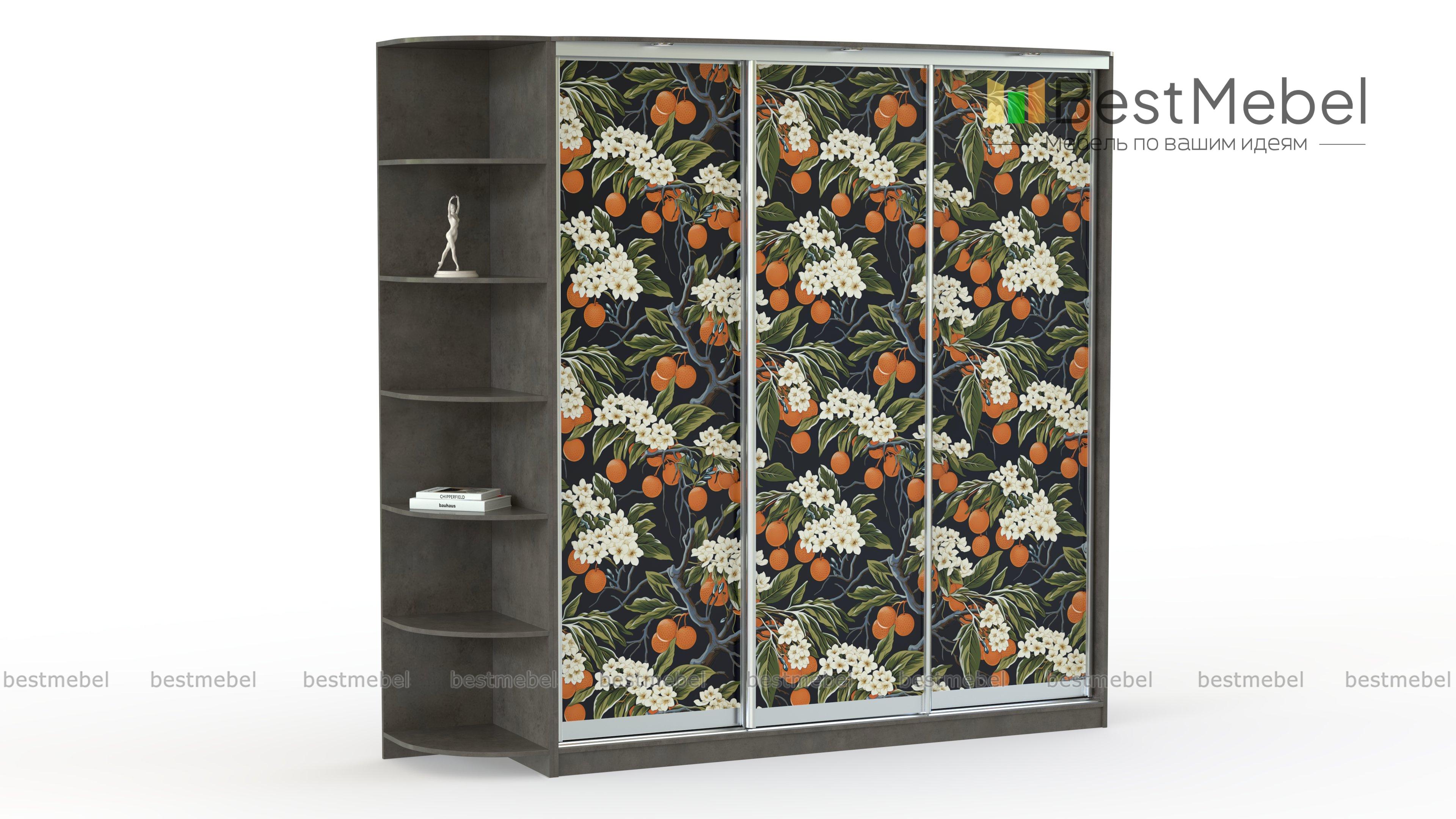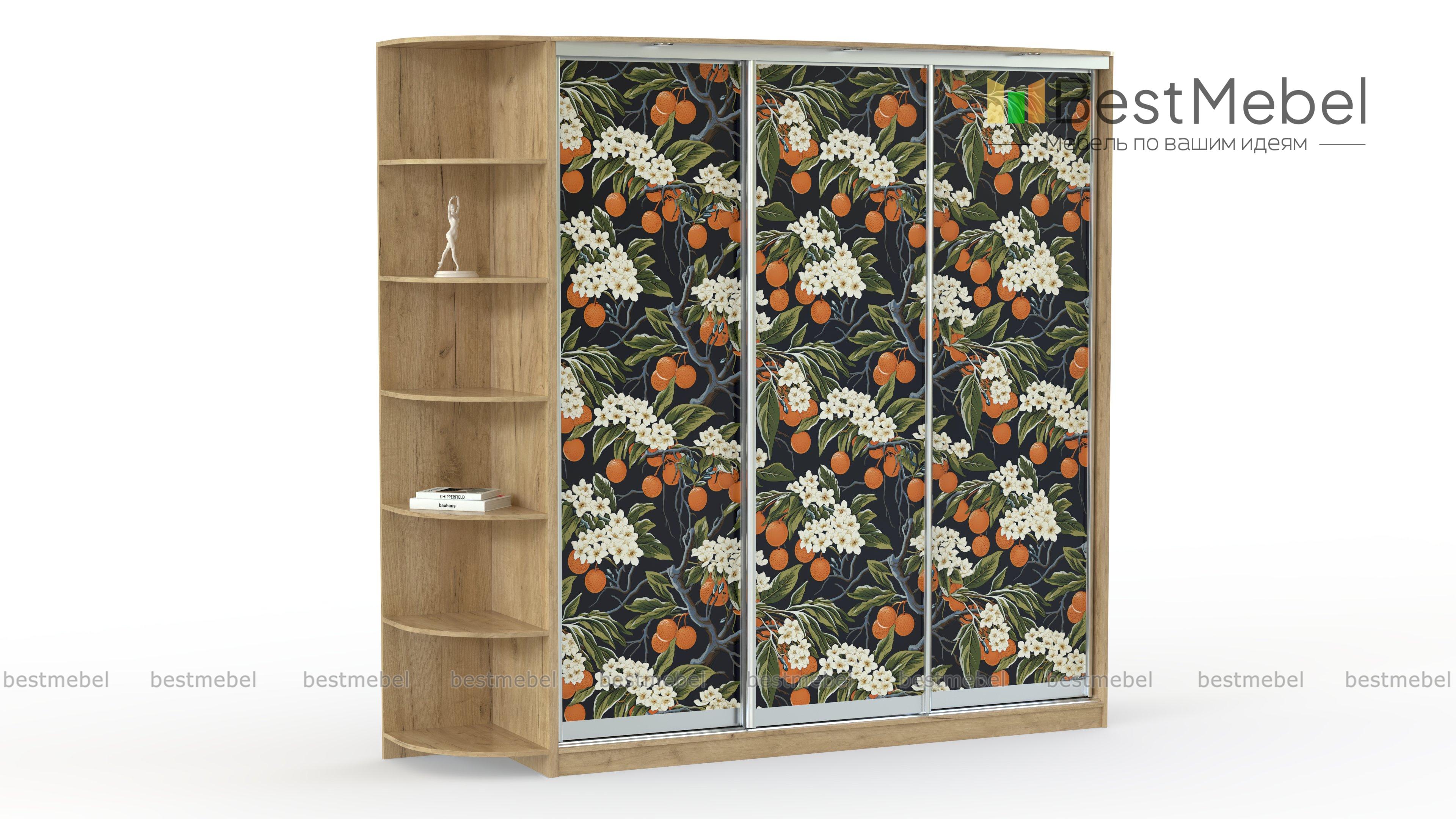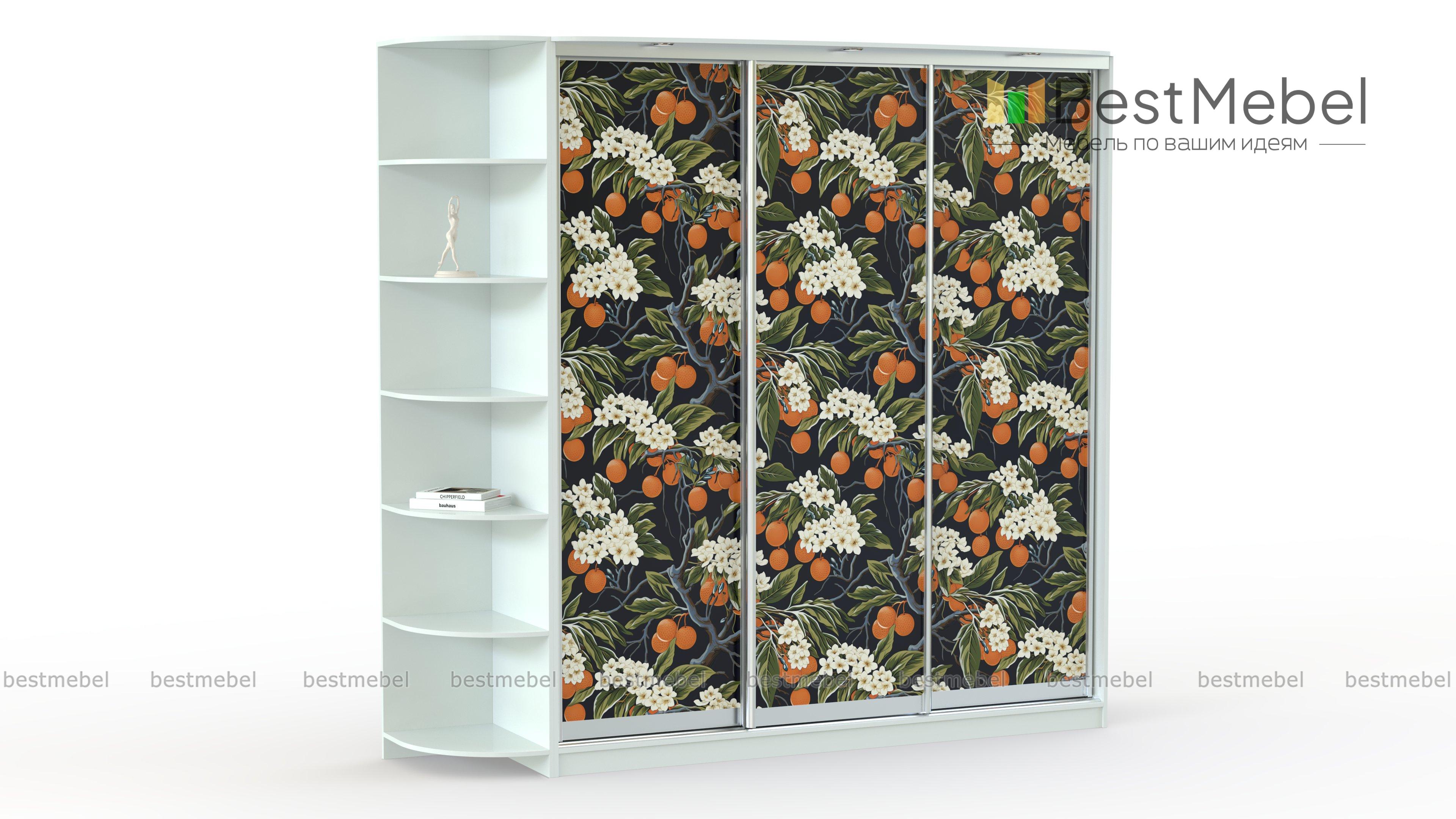 Шкаф-купе Оротава № 38 BMS украшен сочным фруктовым принтом на контрастном фоне. Для удобного размещения предметов гардероба, бытовых мелочей, книг и декора комбинированная модель оборудована не только трехдверным отделением-купе, но и плавно закругленным стеллажом. Встроенные в козырек светильники делают пользование комфортным, а атмосферу в комнате - камерной и уютной. Купить шкаф-купе Оротава № 38 BMS, изготовленный по вашим размерам, вы сможете в нашем интернет-магазине.