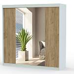 Фасад шкафа-купе состоит из двух дверей, которые выполнены из ЛДСП и зеркал. Их сочетание делает конструкцию менее габаритной на вид. А раздвижная система обеспечивает легкое и бесшумное открывание. На нашем сайте можно выбрать вариант цветового оформления. Здесь доступны светлые оттенки, темные насыщенные тона, матовые поверхности и многое другое.