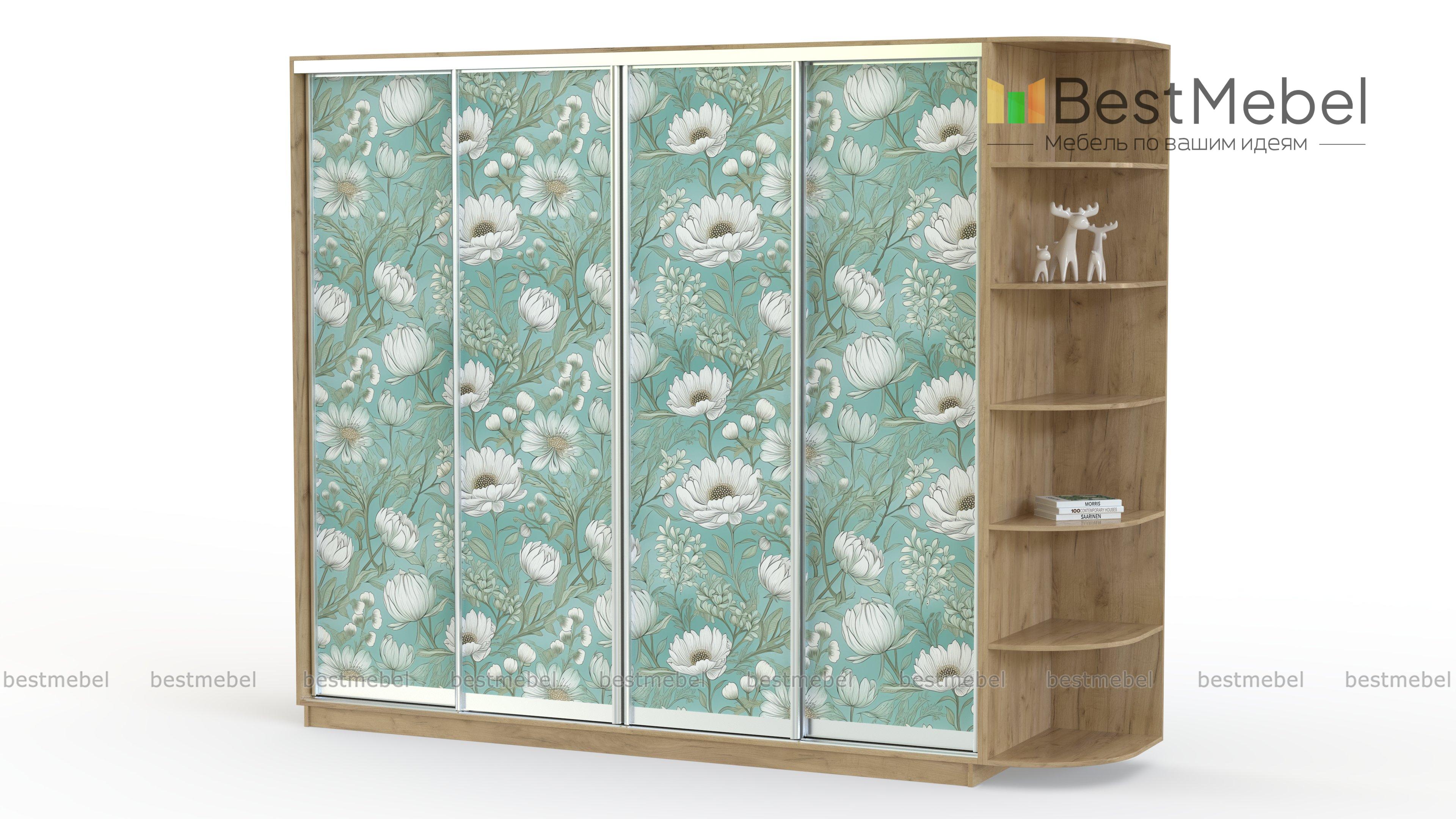 Шкаф-купе четырехдверный Garant 2 BMS - это надежная и функциональная модель с ярким дизайном. Просторное гардеробное отделение, укомплектованное штангами и бельевым стеллажом, дополняют плавно скругленные торцевые полки для книг и декора. Стойкая фотопечать с нежным принтом на фасаде - простой способ освежить интерьер и добавить ему индивидуальности. Купить шкаф-купе четырехдверный Garant 2 BMS с выбором габаритов, цвета и наполнения приглашаем в наш интернет-магазин.