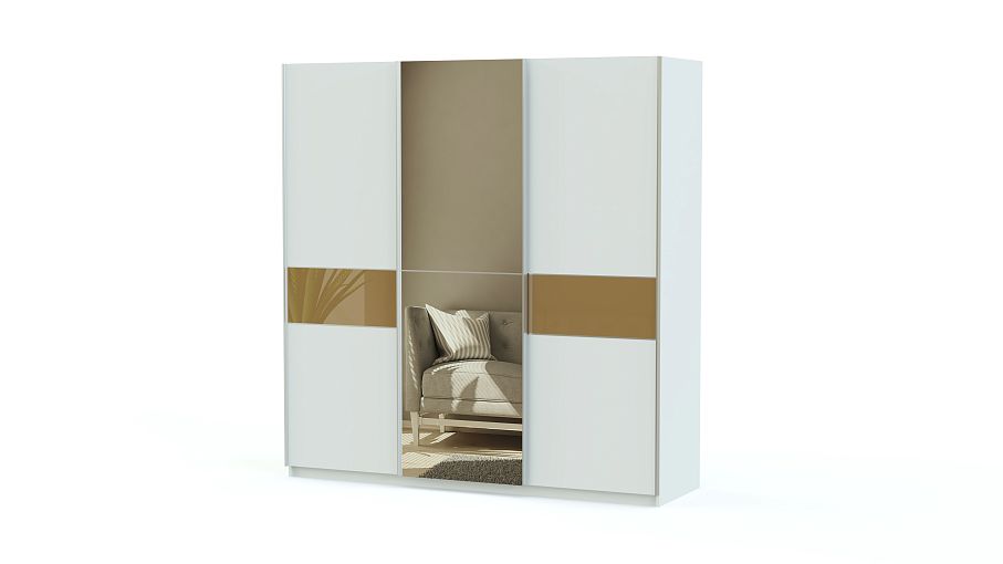 Вместительный трехстворчатый шкаф-купе Элит 53 BMS смотрится легким за счет светлых, с яркой вставкой фасадов и подвесной системы дверей. Зеркальная дверь не только удобна, но придаст помещению объема. Просторные платяное и бельевое отделения, оборудованные штангой и полками, максимально удобны для размещения большого количества вещей. Цветное стекло фасадов практично и устойчиво к повреждениям. В нашем интернет-магазине вы сможете подобрать для шкафа оптимальные параметры.