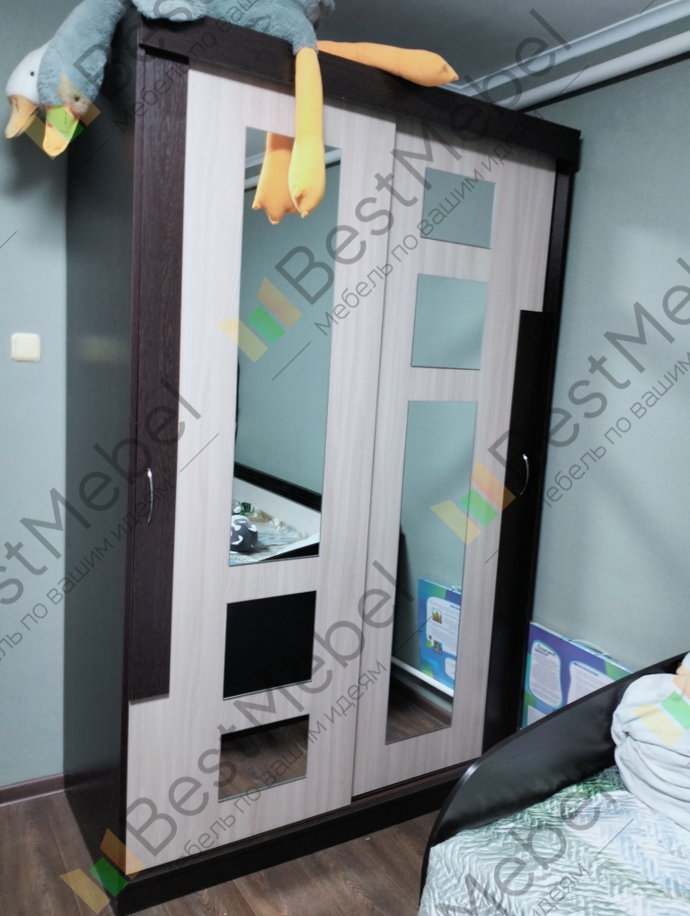 Шкаф-купе Феникс-лайт BMS отличается компактными размерами и простым, но элегантным дизайном. Модель в современном стиле станет отличным выбором для малогабаритных помещений, в которых важна экономия места. Раздвижные дверцы декорированы зеркальными вставками с оригинальным рисунком и контрастными накладками. Внутреннее наполнение – отделение со штангой и вместительная антресольная полка. Купить шкаф-купе Феникс-лайт BMS быстро и недорого приглашаем в наш интернет-магазин.