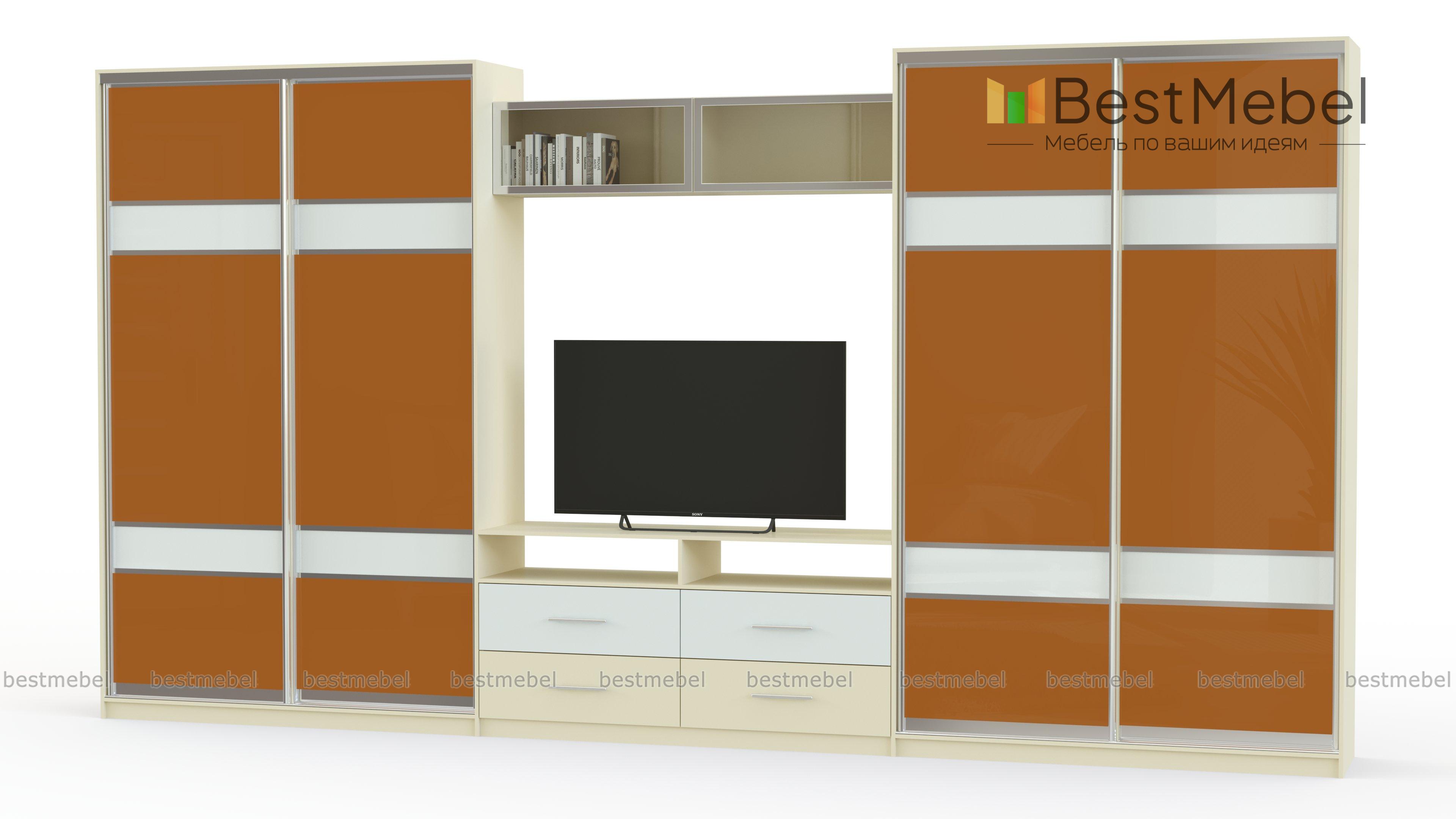 Шкаф-купе Лорена 4 BMS полностью занимает одну из стен комнаты, помогая по максимуму использовать доступное пространство. Выполненный в белом цвете с горизонтальными вставками контрастных тонов, шкаф смотрится легким, несмотря на габариты, и визуально расширяет границы комнаты. Два симметрично расположенных шкафа-купе дополнены тумбой под аппаратуру с ящиками и нишами и межсекционной открытой полкой для книг. Купить двойной шкаф-купе Лорена 4 BMS с учетом необходимых параметров приглашаем к нам в интернет-магазин.