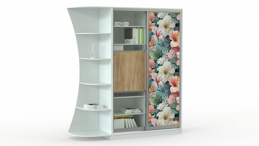 Шкаф-купе Марко 1 BMS гармонично впишется в интерьер современной гостиной, рабочего кабинета или молодежной комнаты. Двухдверная модель, дополненная фигурным торцевым стеллажом, отличается компактными размерами и экономно использует пространство за счет раздвижной конструкции. Хороший обзор книгам и предметам декора обеспечит стеклянная вставка на фасаде, а украсит интерьер фотопечать с цветочным рисунком. Купить Шкаф-купе Марко 1 BMS приглашаем в наш интернет-магазин по доступной цене.