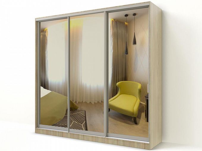 Шкаф-купе Макролюкс 5 BMS с зеркальным фасадом и корпусом в древесных тонах можно легко вписать в любой по стилю интерьер. Отражающие свет поверхности зрительно расширят границы небольшой комнаты и позволят сэкономить на отдельном аксессуаре. Удобная система хранения для предметов гардероба и постельного белья включает в себя платяное отделение и секцию с полками. Купить шкаф-купе Макролюкс 5 BMS, изготовленный по вашим размерам, приглашаем в наш интернет-магазин.