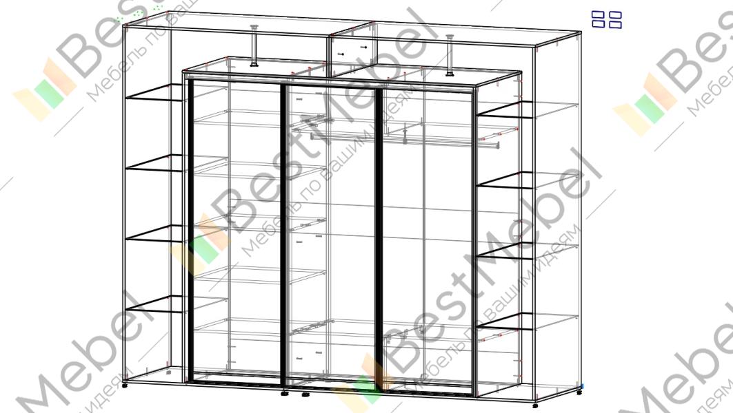 Шкаф-купе Млайн 8 BMS органично вписывается в современные интерьеры благодаря стильной геометрии. Трехдверная модель с зеркальным фасадом дополнена расположенными по периметру стеклополками и открытыми секциями на хромированных опорах. Крупногабаритный, но при этом визуально легкий шкаф разместит как одежду и домашний текстиль, так и предметы декора, книги, посуду и многое другое. Купить шкаф-купе Млайн 8 BMS приглашаем в наш интернет-магазин, подобрав оптимальные размеры и цветовое решение.