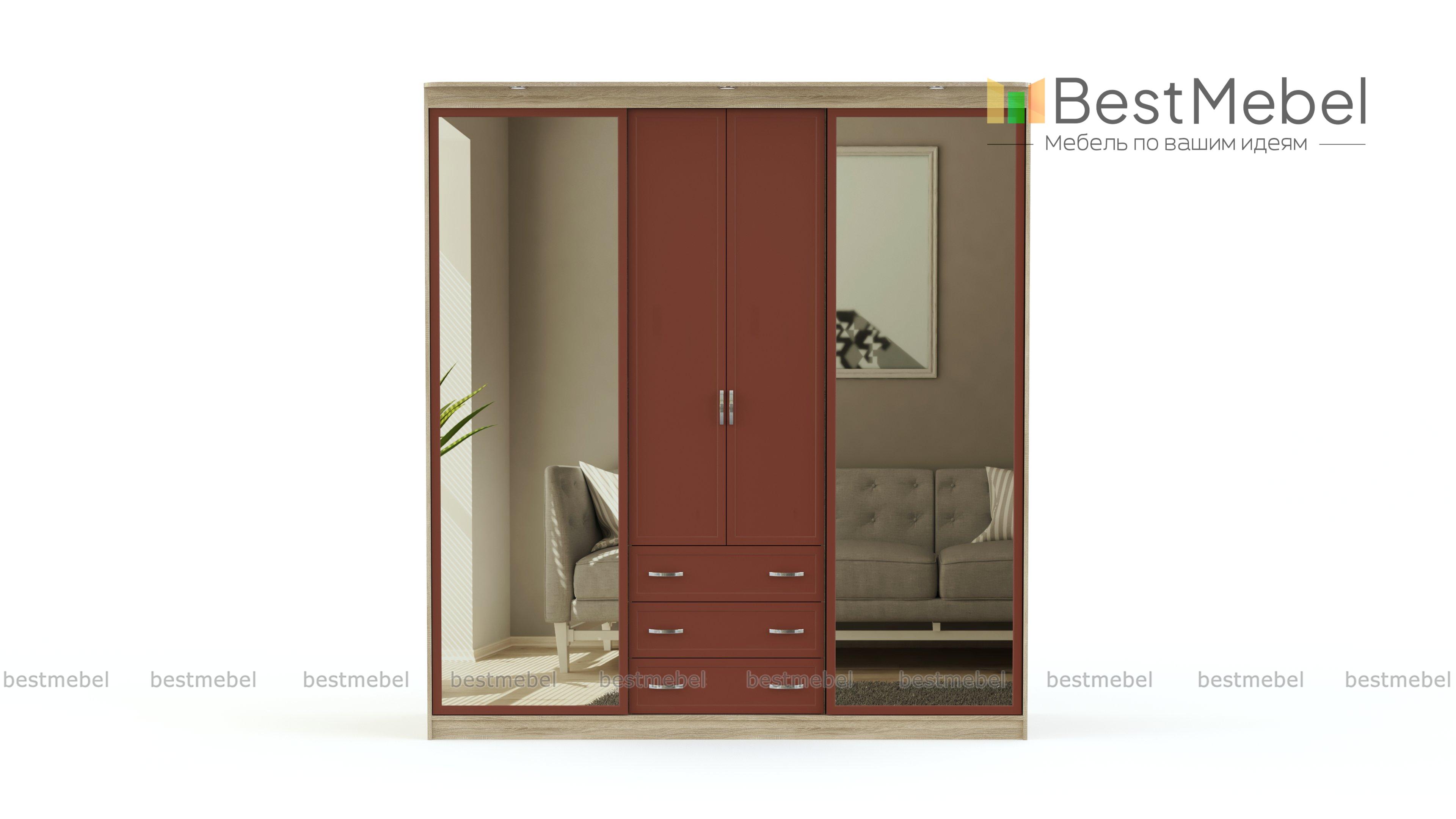 Шкаф-купе Миллениум Р-5Х BMS – это стильный микс классики и современных тенденций. Комбинированная модель для спальни или прихожей оборудована двумя платяными раздвижными отделениями, расположенной в центре распашной секцией с полками и выдвижными ящиками, незаменимыми для хранения мелочей. Традиционные рамочные фасады выполнены в терракотовых тонах, боковые створки – зеркальные. Купить шкаф-купе Миллениум Р-5Х BMS для комфортного и эстетичного интерьера приглашаем в наш интернет-магазин.