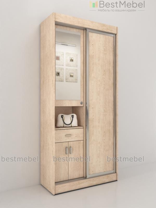Шкаф-купе МТ 1.1.2 BMS прекрасно подойдет для меблировки малогабаритных помещений благодаря компактности и практичной раздвижной конструкции. Правая часть модели представляет собой платяное отделение за раздвижной дверцей, левая – комбинация из зеркального распашного шкафчика, просторной ниши и тумбы. Выполненный из качественных материалов и оборудованный системой направляющих «Версаль», шкаф надежен и прост в эксплуатации. Купить шкаф-купе МТ 1.1.2 BMS вы всегда сможете по лучшей цене в нашем интернет-магазине.