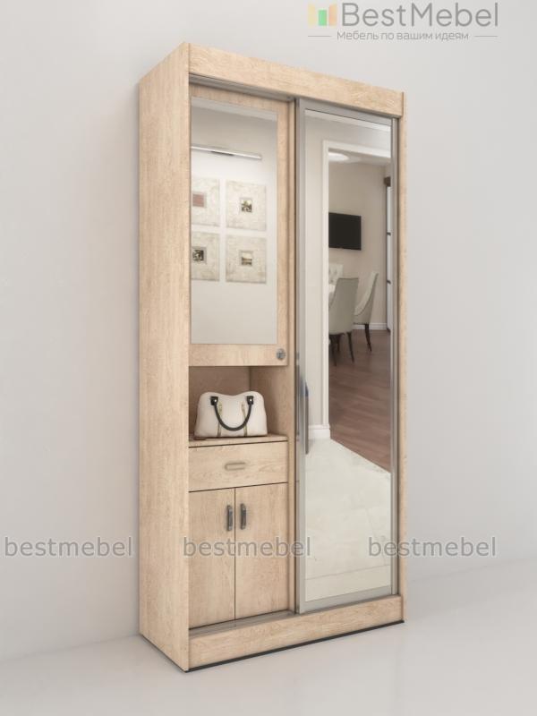 Шкаф-купе МТ 1.2.2 BMS – многофункциональная модель, которая порадует владельцев практичной конструкцией и современным дизайном. В компактной модели скомбинированы отделения разного типа – раздвижное, распашной зеркальный шкафчик, ниша и тумба с ящиком и дверцами. Фасады выполнены в сочетании светлых древесных тонов и алюминиевого профиля, оптимальный вариант внутреннего наполнения – штангу или бельевые полки, вы сможете выбрать самостоятельно. Купить шкаф-купе МТ 1.2.2 BMS приглашаем в наш интернет-магазин.