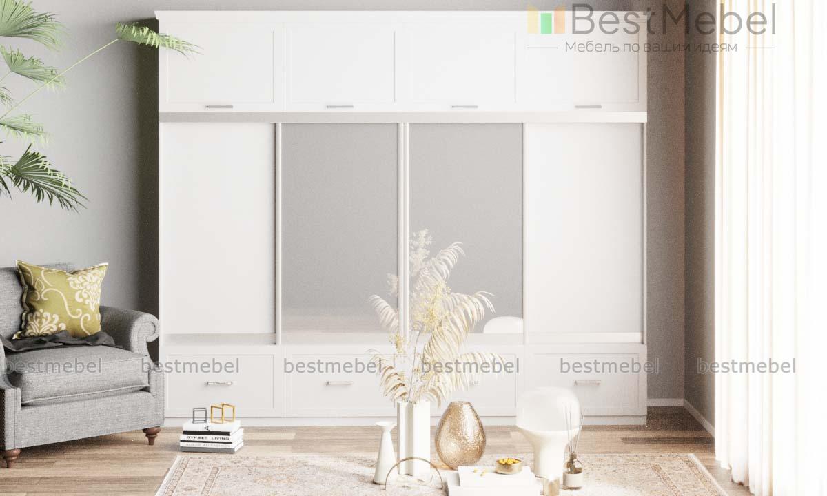Шкаф-купе Нэмо 4 BMS поможет разгрузить помещение от лишней мебели и компактно разместить большое количество вещей. Крупногабаритный комбинированный шкаф оборудован четырьмя просторными выдвижными ящиками в основании, четырехдверным отделением-купе с полками и штангами и антресолью с открывающимися вверх дверцами. Рамочные фасады выполняются в нескольких цветах на выбор, центральные створки – зеркальные. Купить шкаф-купе Нэмо 4 BMS приглашаем выгодно в наш интернет-магазин.