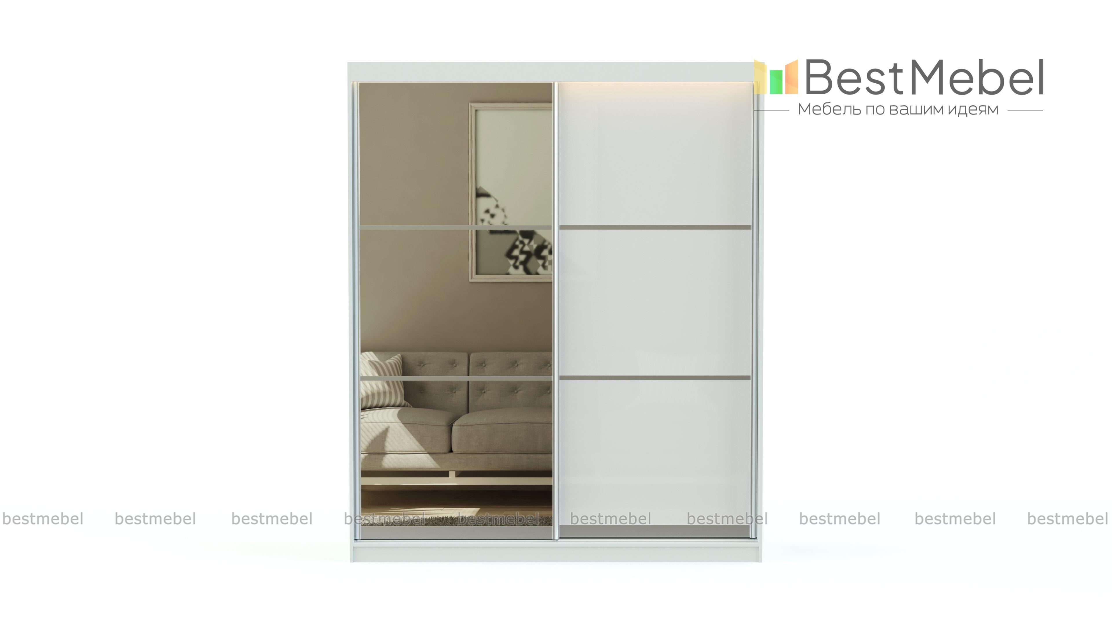 Шкаф-купе с зеркалом BMS поможет не только компактно разместить вещи, но и визуально расширит границы комнаты. Дополнительную глубину небольшому помещению придаст наполовину зеркальный фасад шкафа, выполненного в нейтральном белом цвете с горизонтальными вставками. Раздвижные дверцы в серебристом профиле экономят пространство и комфортны в эксплуатации благодаря надежной системе направляющих. Купить шкаф-купе с зеркалом BMS для современной спальни или молодежной комнаты приглашаем в наш интернет-магазин.
