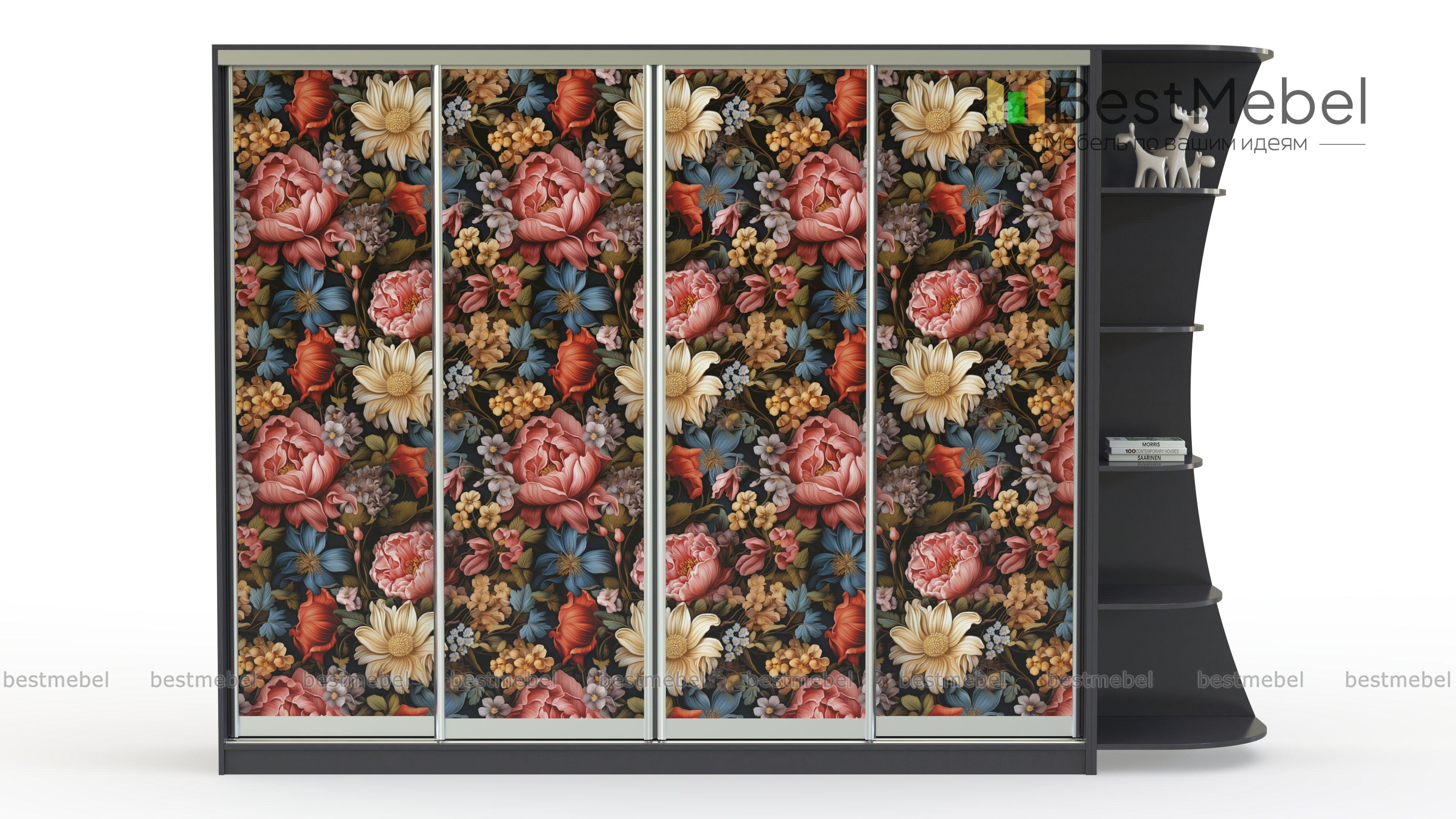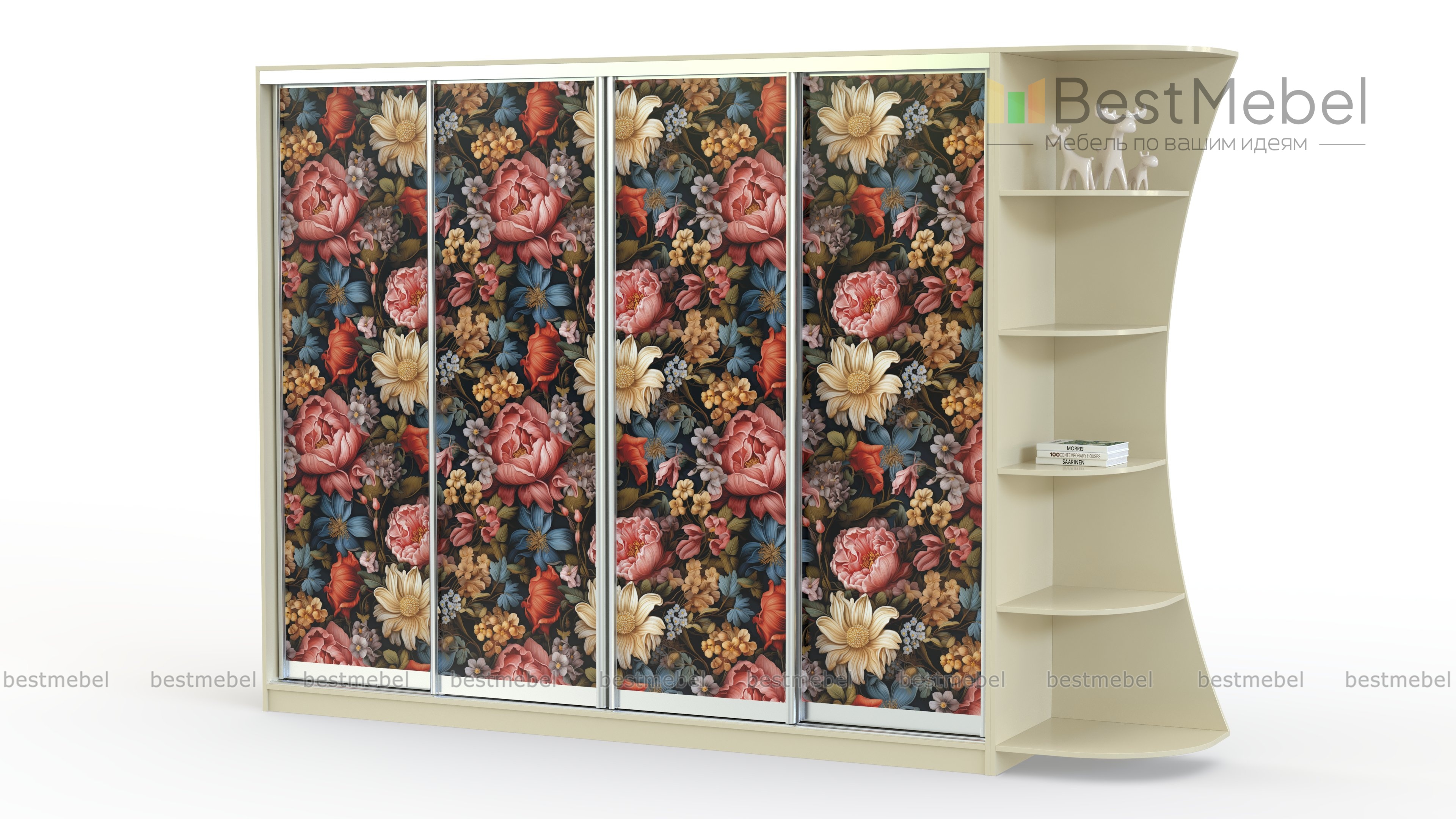 Шкаф-купе Соло 28 BMS - для яркой гостиной или спального интерьера. Элегантная форма с полукруглым боковым вырезом и роскошная цветочная фотопечать создают броский дизайн в стиле современной классики. Чтобы хранение было максимально удобным, четырехдверный гардероб дополнили книжным стеллажом с открытыми, безопасно скругленными полками. Купить шкаф-купе Соло 28 BMS вы сможете в нашем интернет-магазине с выбором необходимых размеров и цветовой гаммы.