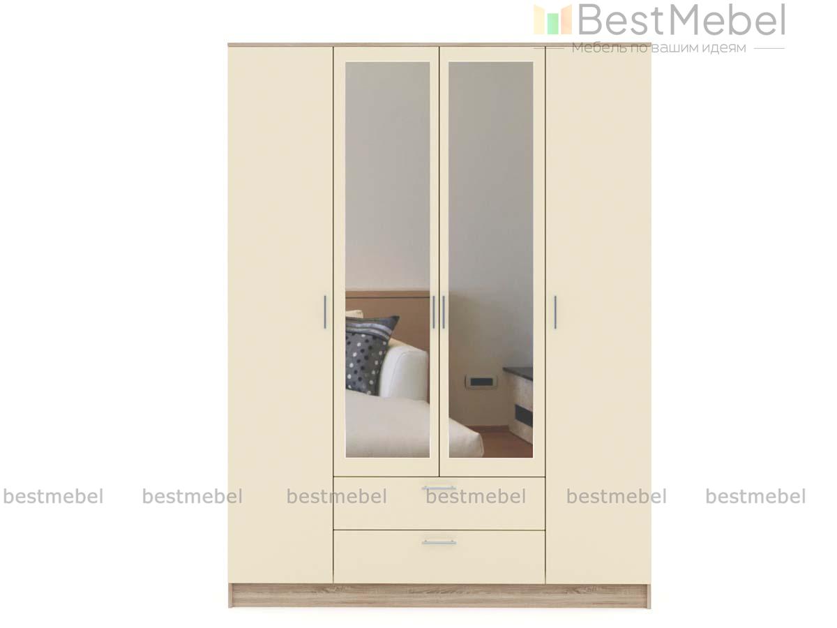 В стандартной комплектации шкаф имеет 1 платяное отделение по центру (полка для шляп и штанга), 2 бельевых отделения с 4-мя полками + 2 выдвижных ящика. Возможно изменение внутреннего наполнения.