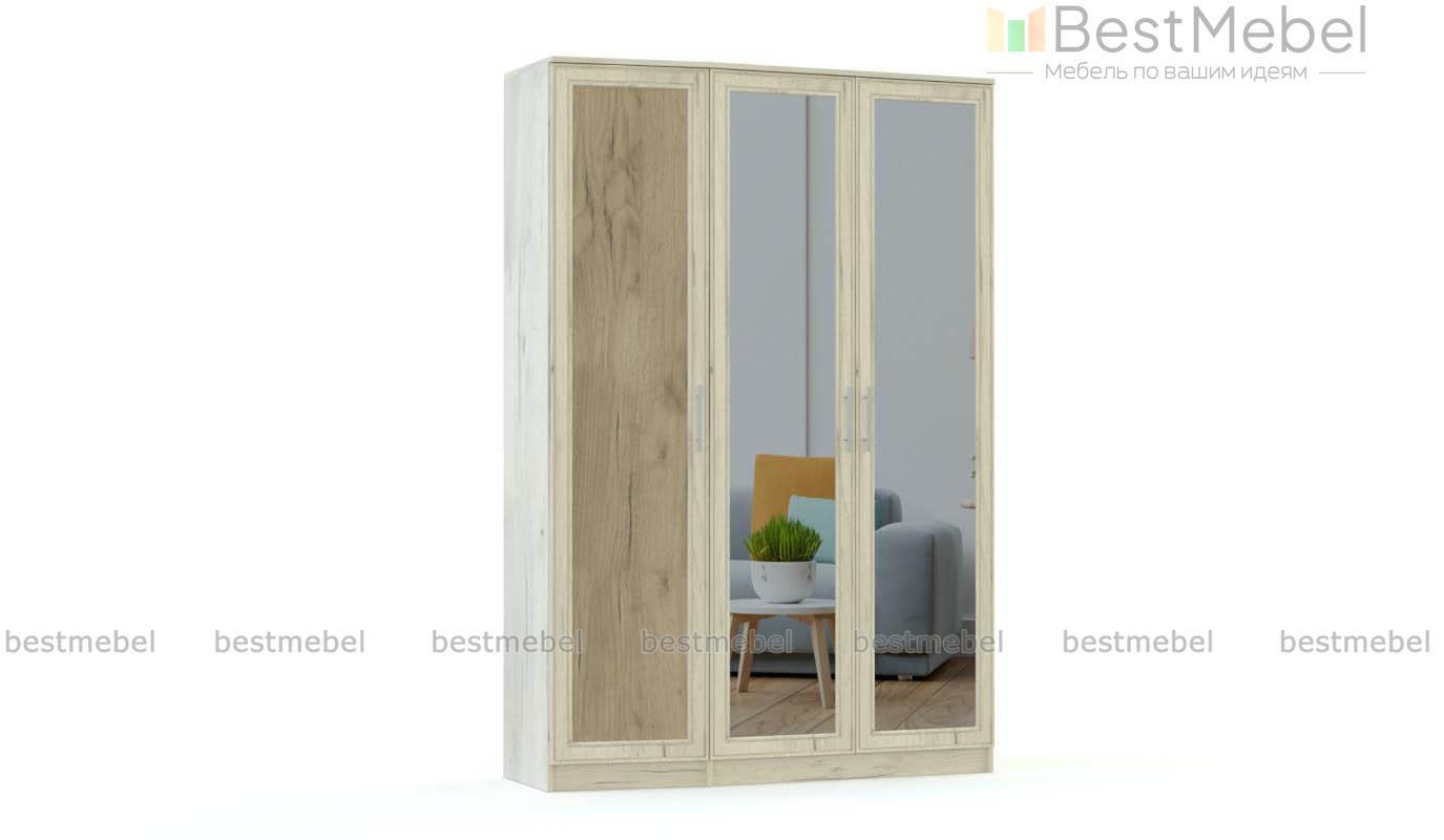 Распашной шкаф Астория 2 BMS дополнит спальный интерьер удобной системой хранения. Трехдверная модель традиционной распашной конструкции оборудована вместительным платяным отделением со штангой и бельевыми полками. Рамочные фасады шкафа выполнены в крафтовых древесных тонах, делая комнату уютнее, а зеркальные створки придадут ей дополнительную глубину и объем. Купить распашной шкаф Астория 2 BMS приглашаем в наш интернет-магазин с учетом необходимых размеров.