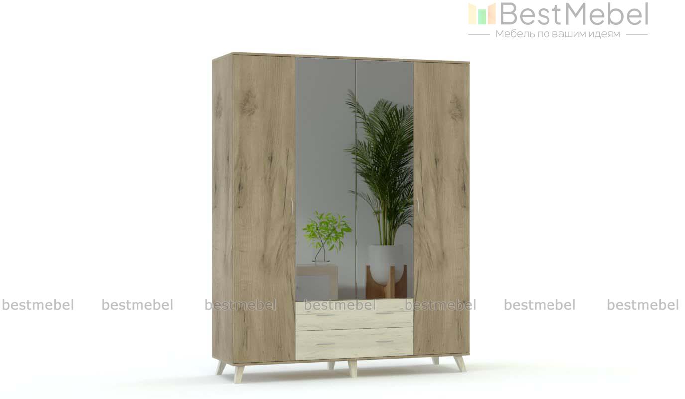 Распашной шкаф Келли BMS отличается вместительностью, а устойчивость и легкость придают конструкции высокие скошенные ножки. Четырехдверная модель с платяным отделением и бельевыми полками, дополненная парой выдвижных ящиков, станет прекрасным выбором для меблировки современной спальни. Крафтовые древесные тона помогут создать уютную атмосферу, а зеркала визуально расширят границы небольшой комнаты. Купить распашной шкаф Келли BMS приглашаем в наш интернет-магазин с учетом оптимальных размеров.