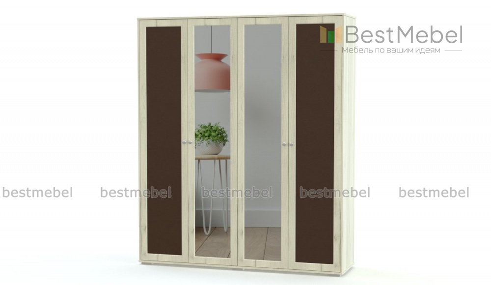 Распашной шкаф Мона 1 BMS – это четырехдверная модель с рамочными фасадами в светлых древесных тонах, цветными и зеркальными вставками. Лаконичный шкаф может дополнить другие предметы спальной коллекции или самостоятельно использоваться в меблировке прихожей или гостиной. Просторные внутренние отделения разместят одежду и домашний текстиль, а зеркала визуально расширят границы комнаты. Купить распашной шкаф Мона 1 BMS с возможностью выбора размеров приглашаем в наш интернет-магазин.