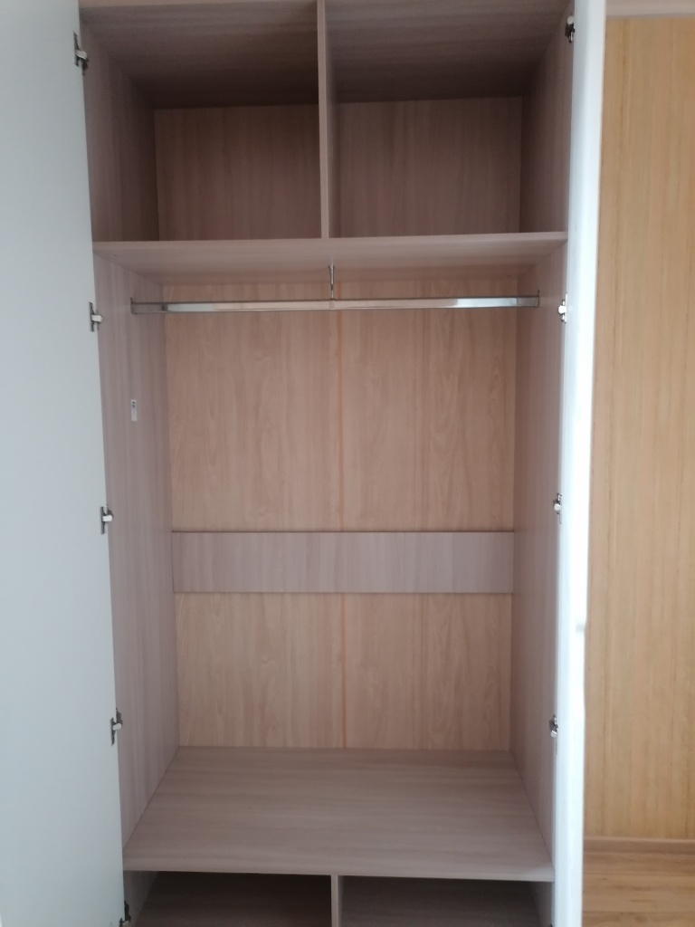 Очень понравился изготовленный шкаф по моим размерам и по выбору материала, крепежа. Все устраивает, хорошо что есть такие сайты, где можно подобрать самому все удобства, материал и стоимость рассчитать сразу. Консультанты всегда на связи, в случаях, если не понятен цвет и т.п давали консультации. Сборщики активны быстро собирают.Единственный минус в интеграционной ручке во 2 секция при открытии дверца попадает на перегородку и цепляешься за неё, что не совсем удобно, но привыкли. Рекомендую заказывать.