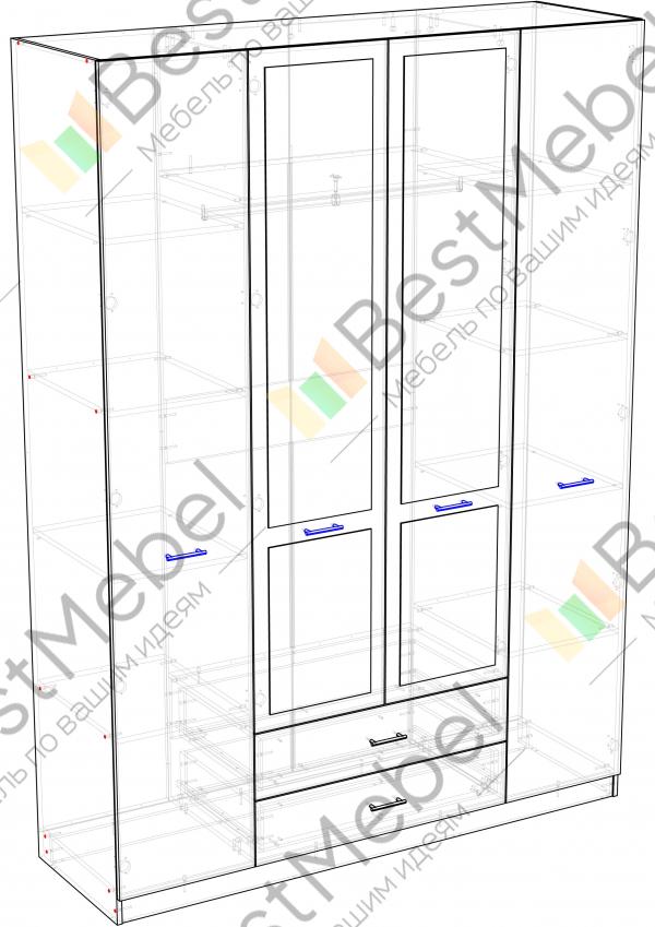 Шкаф Татьяна 4 BMS отличается вместительностью и выполнен в контрастной цветовой гамме, которая элегантно смотрится и в классическом, и в современном интерьере. За распашными дверцами располагаются антресольные полки, два отделения со штангами и секция с полками. В основании – два выдвижных ящика для мелких вещей. Оригинальные фасады декорированы зеркалами и ручками с контрастными вставками темного оттенка. Купить шкаф Татьяна 4 BMS по доступной цене вы сможете в нашем интернет-магазине.