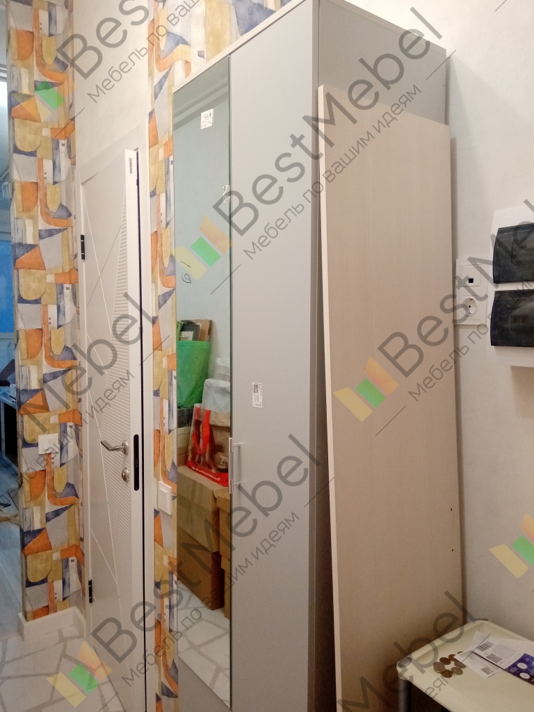 Заказ 00000569520. В узкий коридор мне нужен был шкаф глубиной 40 см. Очень удобно, что на сайте можно подобрать разные размеры, и что менеджеры перезванивают для уточнения деталей заказа. Специально для верхней одежды я брала выезжающую широкую перекладину, влезает 5-6 длинных пуховиков и зимних курток. Плюс внутри шкафа полка для головных уборов. Серый цвет выглядит просто, без изысков. Зеркало очень вписалось в интерьер, не занимает места на стене. Я довольна возможностью подобрать нестандарт!