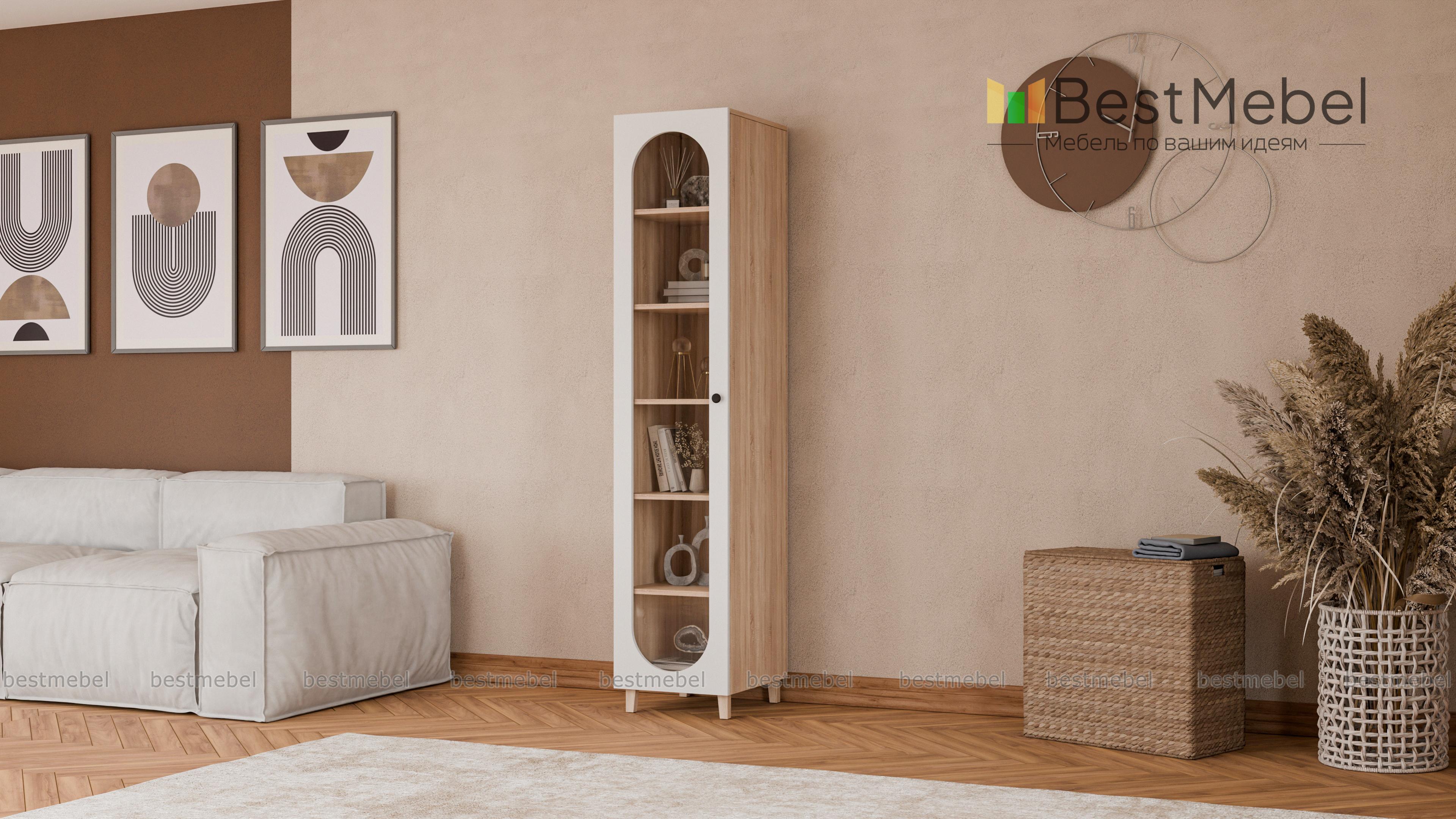 Шкаф-пенал Рене 2 BMS представляет собой стильную витрину с распашной дверцей. За стеклом с большим овальным вырезом располагаются пять полок для книг, учебных пособий, посуды, предметов коллекции и еще многого другого. Актуальная палитра оттенков позволяет вписать этот компактный пенал с высокими ножками практически в любой современный интерьер. Купить шкаф-пенал Рене 2 BMS вы сможете в нашем интернет-магазине с выбором размеров, цвета и фурнитуры.