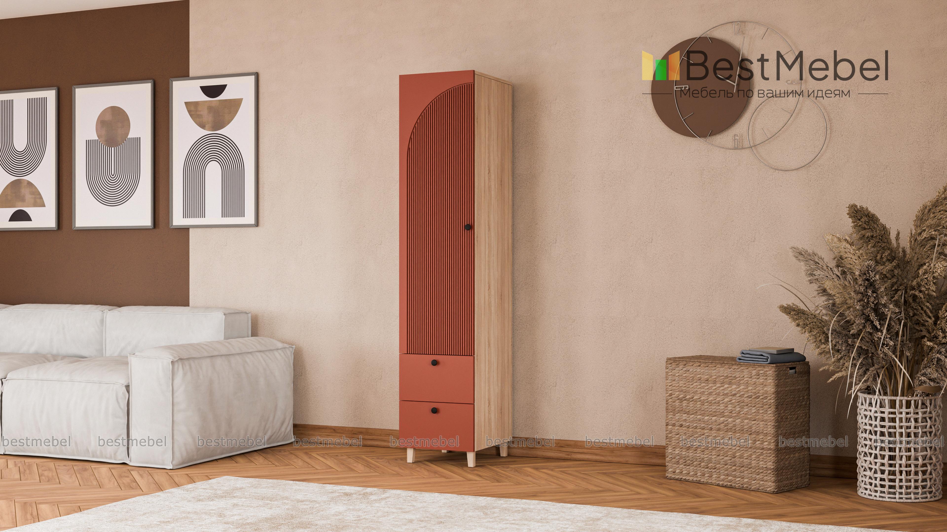 Шкаф-пенал Вивьен 4 BMS может использоваться как часть комплекта или самостоятельный предмет обстановки спальни, гостиной или прихожей. Стильный пенал с высокими ножками выполнен из ламинированной плиты и МДФ с рельефной отделкой. Помимо основного распашного отделения модель укомплектована парой выдвижных ящиков для хранения мелких вещей. Купить шкаф-пенал Вивьен 4 BMS приглашаем в наш интернет-магазин с изготовлением по индивидуальным размерам.