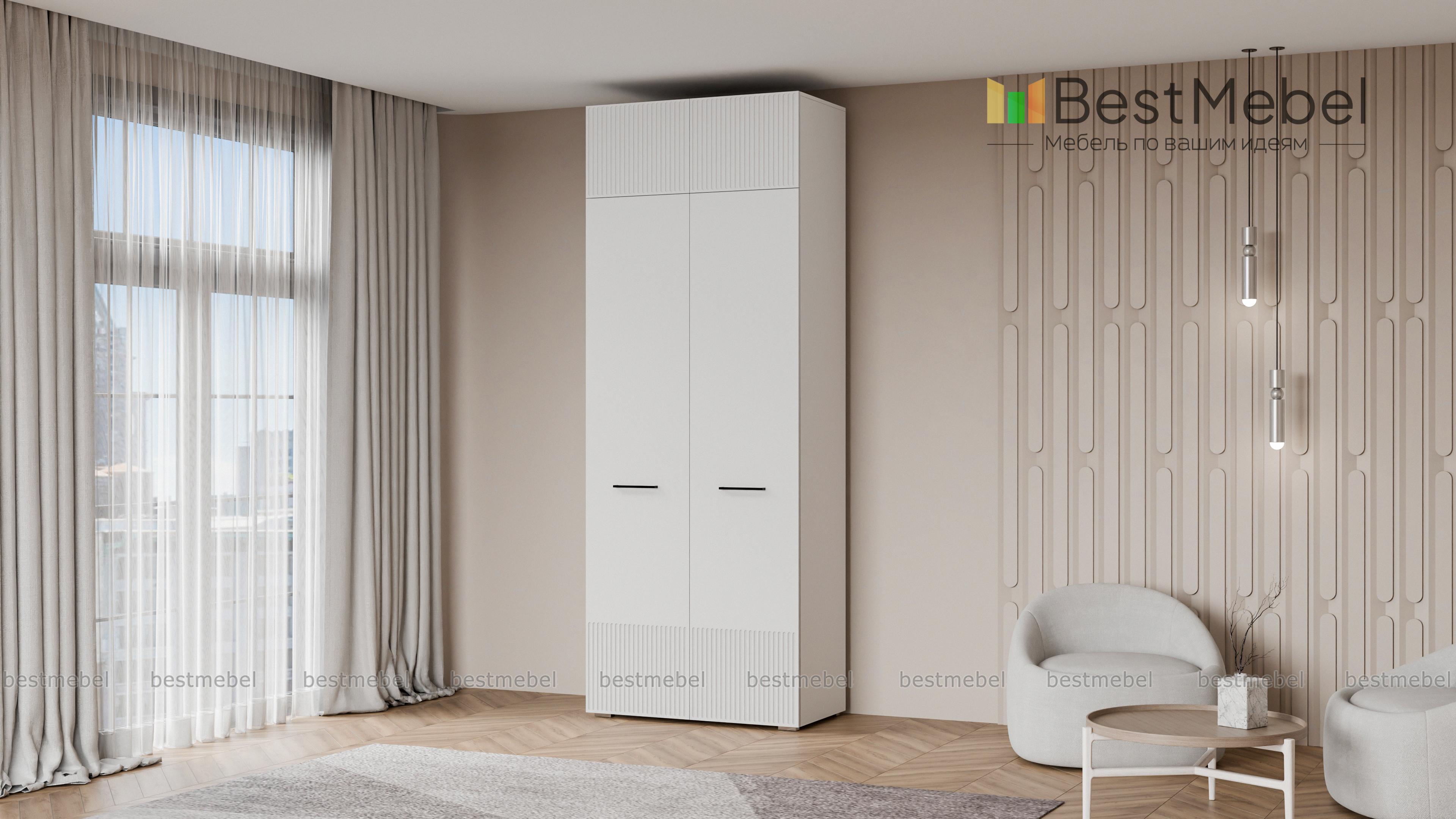 Шкаф распашной Декарт 8 BMS поможет быстро навести порядок в небольшой комнате. Двухдверный гардероб имеет базовое наполнение из штанги и верхней полки, а дополнительное пространство для хранения дает антресоль. Всегда актуально выглядит светлый фасад из МДФ с классической фрезерованной отделкой и контрастными поперечными скобами. Купить шкаф распашной Декарт 8 BMS в нужном размере и цветовой гамме приглашаем недорого на сайт нашего интернет-магазина.